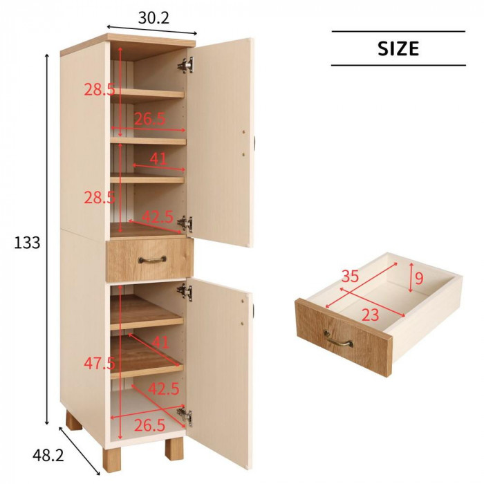 サイズ | 外寸:幅30.2×奥行48.2×高さ133cm 個装サイズ:67×46×22.5cm |