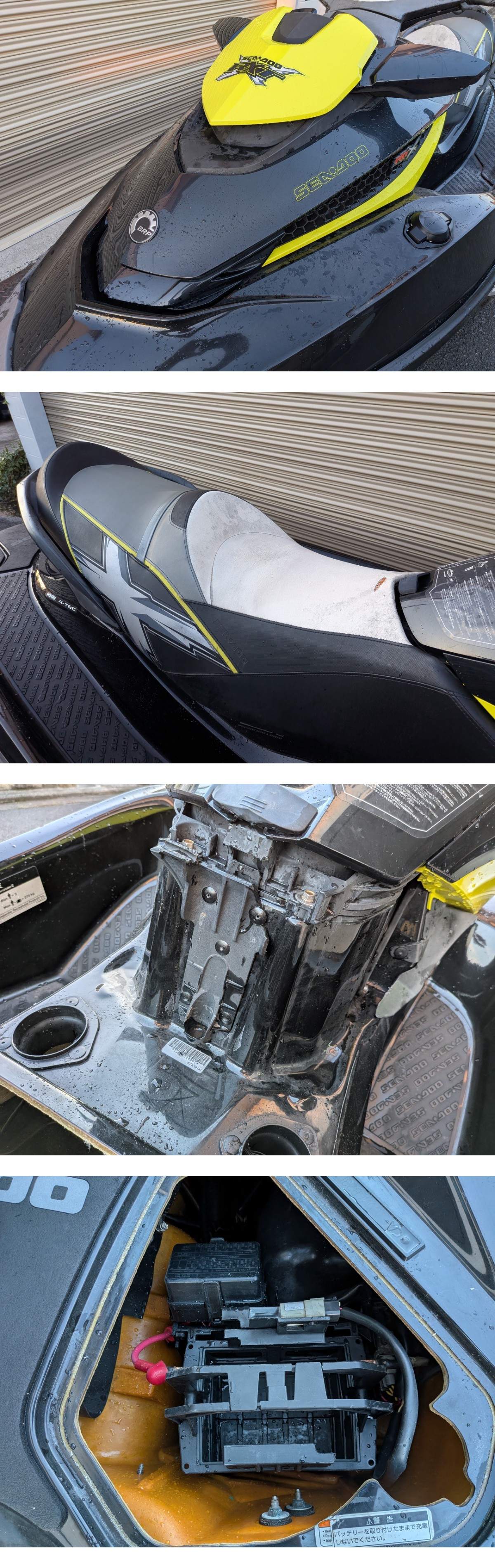 | 商品説明 | 前所有者がエンジンが掛からなくなり2年程放置されていた船体です。 メーター液晶も映らず故障してます。 バッテリーを繋ぎ、スタートボタンを押すとメーター起動しますが、 エンジンチェックランプが点灯し、セルもエンジンも動きません。 バッテリーは付属しません。 前所有者の使用過程・故障原因等分かりません。 ジャンク品です。 現在検査切れで当方に名義変更後、船舶検査証書は返納済みです。 名義変更は可能です。 船体詳細 メーカー: SEADOO モデル:RXT-X260RS 年式:2013 カラー:ブラック/イエロー アワー:約90 新造進水年月:平成25年7月 付属品: ノーマルキー1個 船体の名義変更については名義変更完了まで保証金3万円が必要です。 当方に依頼いただく事も可能です。その場合は保証金はいりません。 印鑑証明書1通と実印を押印した船舶用委任状を用意ください。 その際の名義変更事務手数料や書類送付料等4000円を別途ご負担をお願い致します。 船体のみでトレーラーは付属しません。 プラス10万円でトレーラーセットも可能です。 現物確認はgxe903@yahoo.co.jpまでメールでお問い合わせください。 ![]() ![]() |