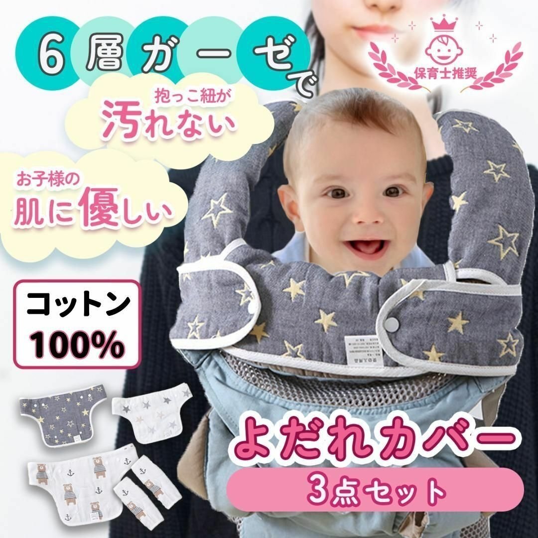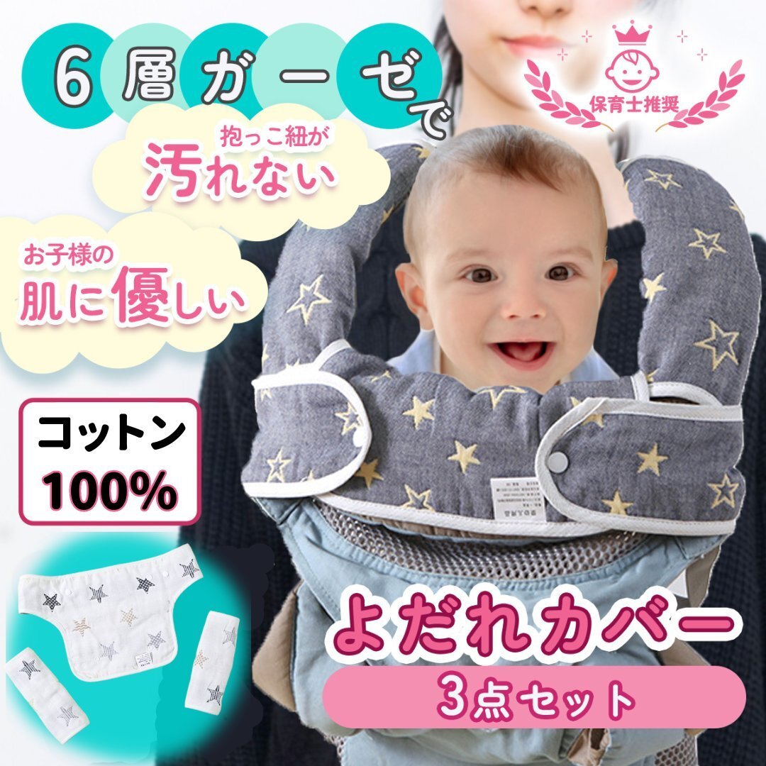 抱っこ紐カバー よだれカバー ベビー 赤ちゃん パッド ガーゼ セット ボタン 簡単 安心 洗濯 かわいい 吸水 前向き 対面 出産祝い コットン 通気性