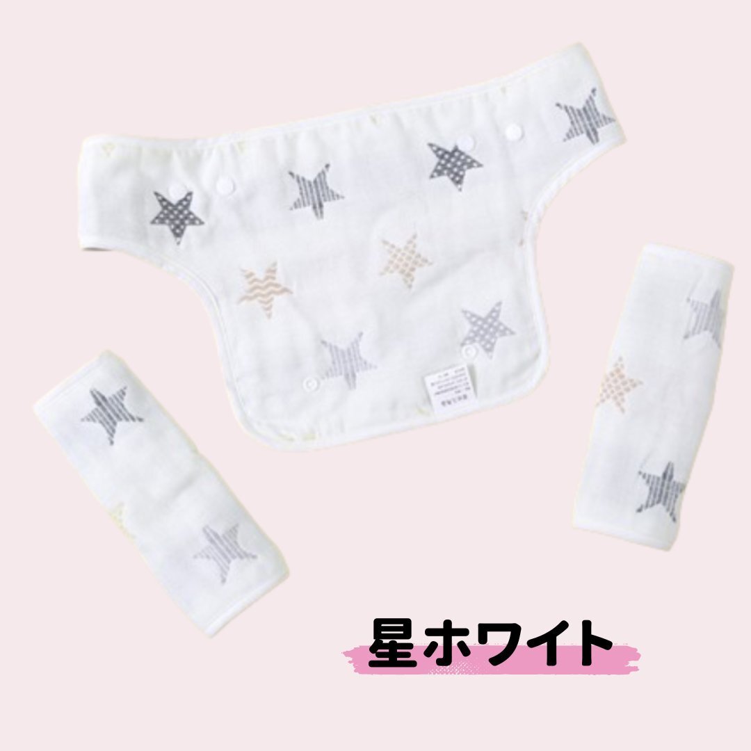 抱っこ紐 よだれカバー よだれかけ エルゴ ホワイト 星 白 スター スタイ 抱っこひも 3点 セット ベビー 赤ちゃん ガーゼ よだれパッド 前