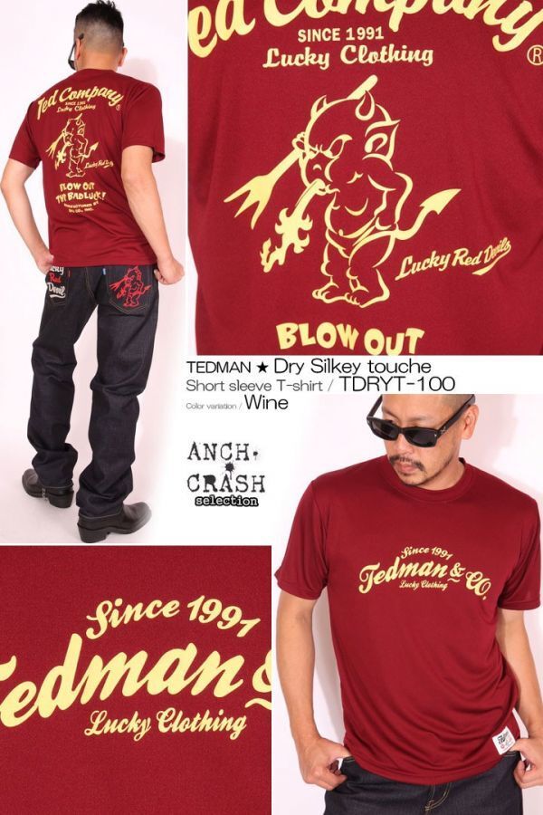 テッドマン TEDMAN ドライTシャツ ワイン【XXLサイズ】吸汗速乾 半袖 TDRYT-100 エフ商会 アメカジ メンズ