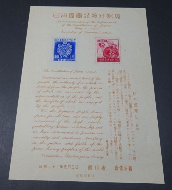 ◆◇1947年発行「日本国憲法」小型シート◇◆ | |