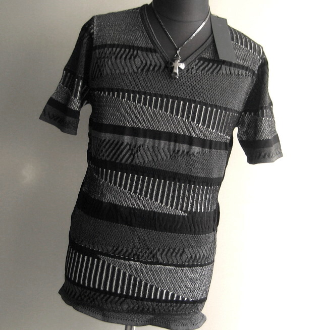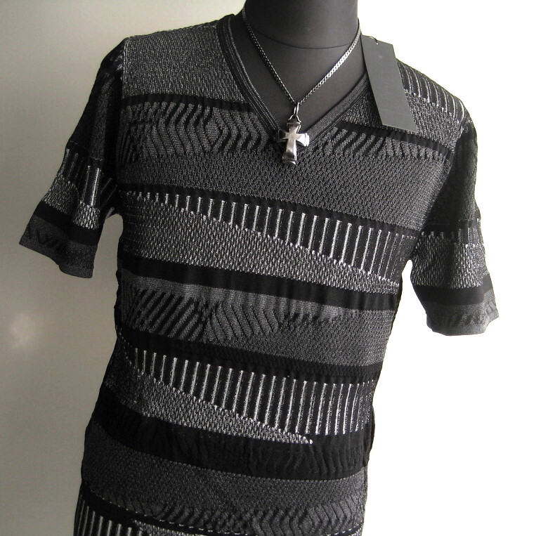 1.9万 新品 L トルネードマート ランダムキカボーダーリンクス半袖Vネックニット ブラック 送料無料 サンプル 720