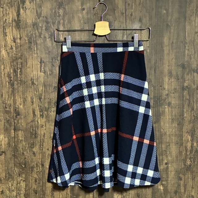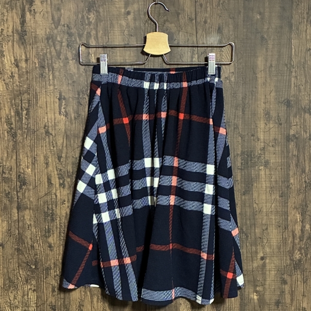 C36◇tocco closet | トッコクローゼット チェック柄フレアスカート ネイビー×ホワイト×オレンジ レディース Mサイズ 中古品