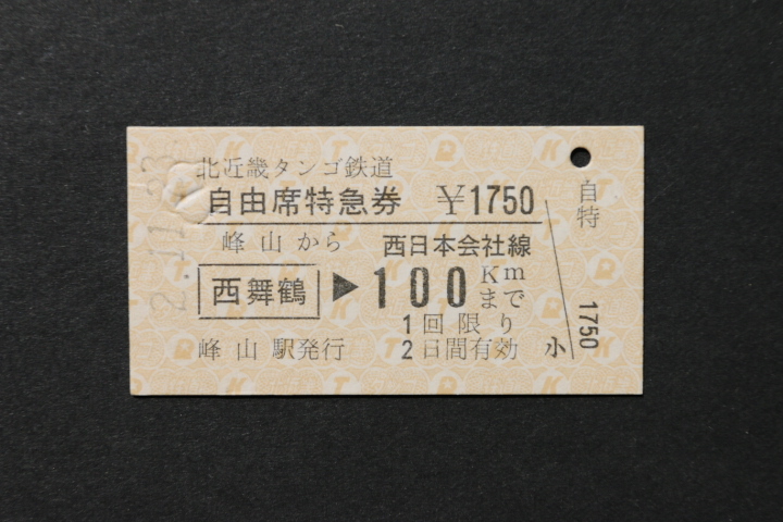 北近畿タンゴ鉄道 自由席特急券 峰山から 西舞鶴 100Km