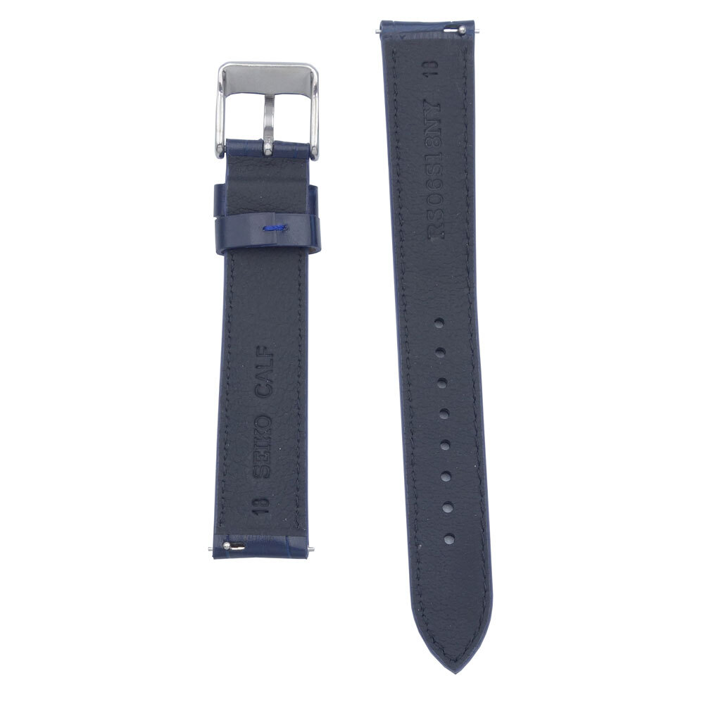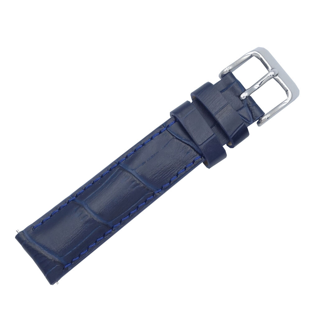 | 新品未使用品です。 ・カラー 紺/ステッチ青 ・ラグ幅(時計本体の幅)-尾錠幅 22-20mm ・メーカー希望小売価格4800円(税抜) ・尾錠側革部分 約80mm ・剣先側全長 約125mm ・厚み 約5.5mm ・表素材 カーフ 牛革ワニタケフ型押 ・裏素材 牛革 ・尾錠色 シルバー ・スマートチェンジ式 バネ棒付き スマートチェンジでバンドの交換が容易です。 | ||