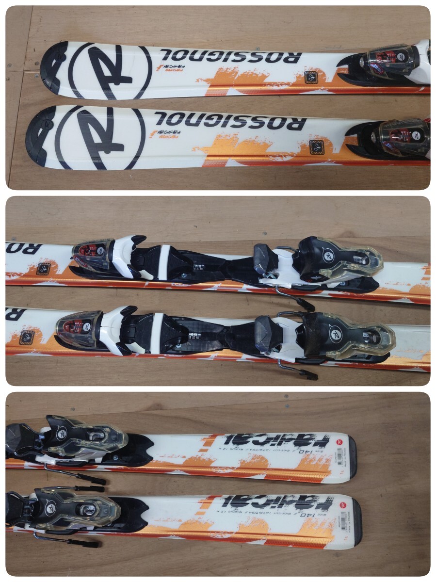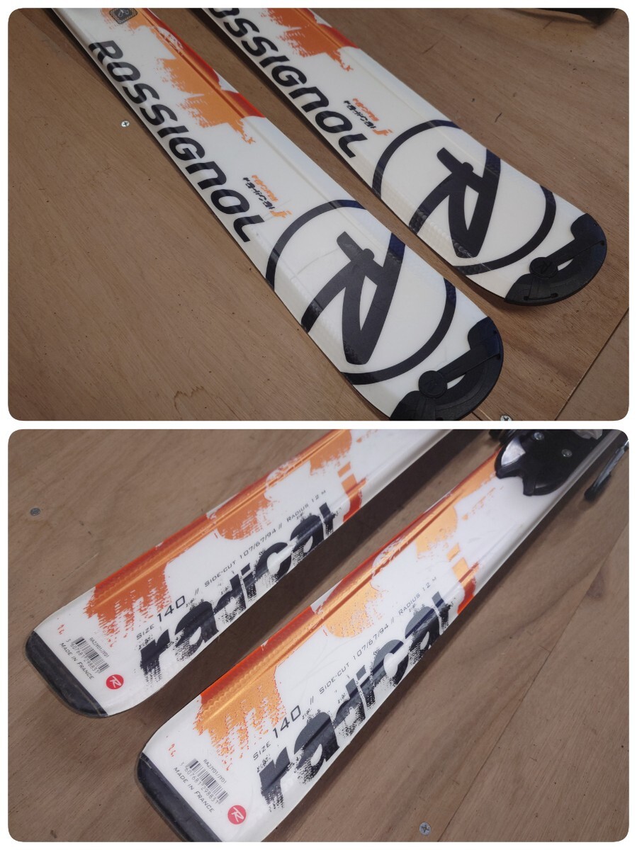 ●24) ROSSIGNOL radical j 140cm 107/67/94 12M スキー板 /ビンディング / ポール 101cm 3点セット 比較的綺麗め 中古 ③