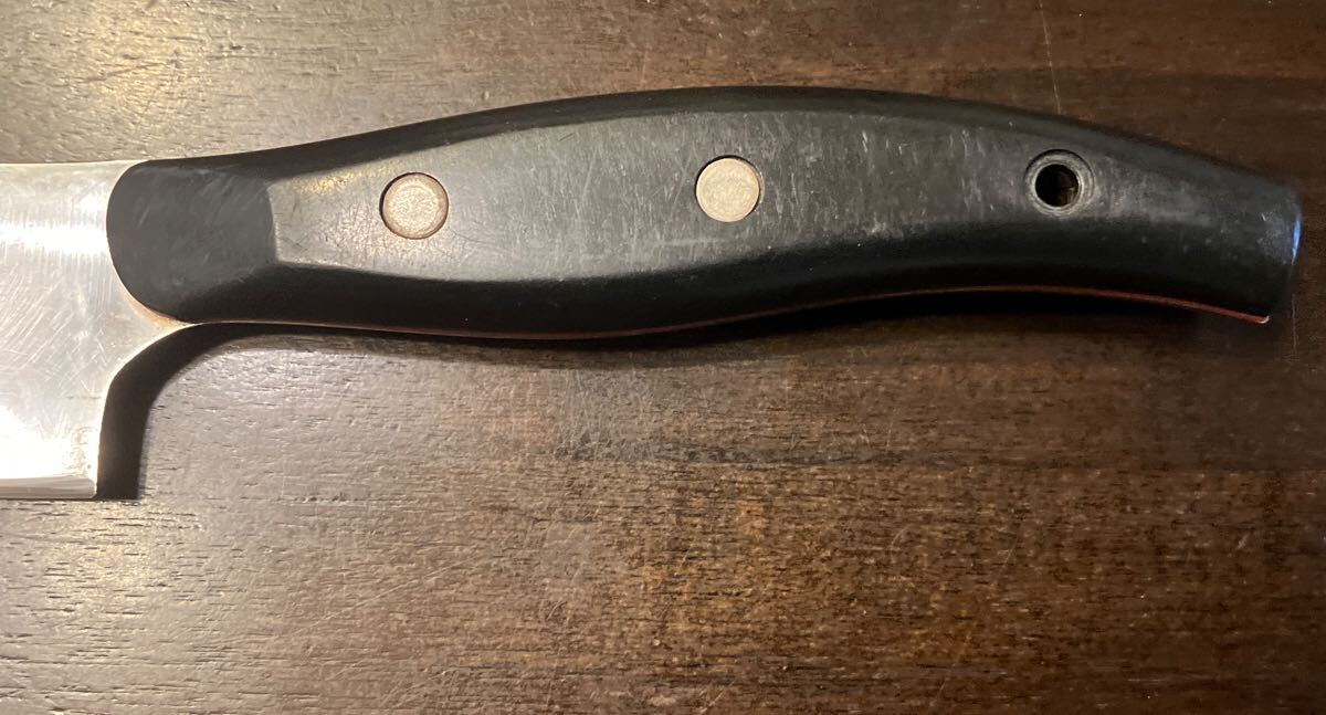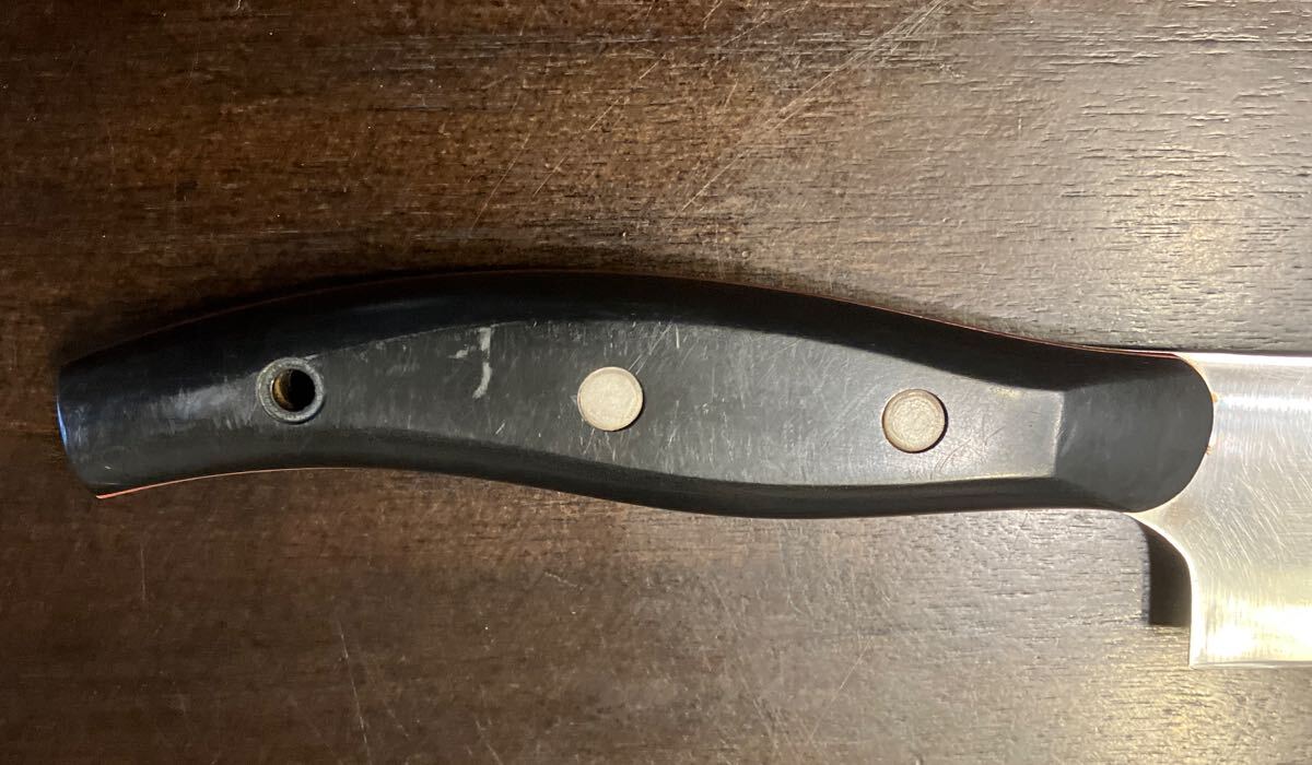 全通し(フルタング)仕様ですが、3つあるリベットのうち1番後ろのものが紛失しております。