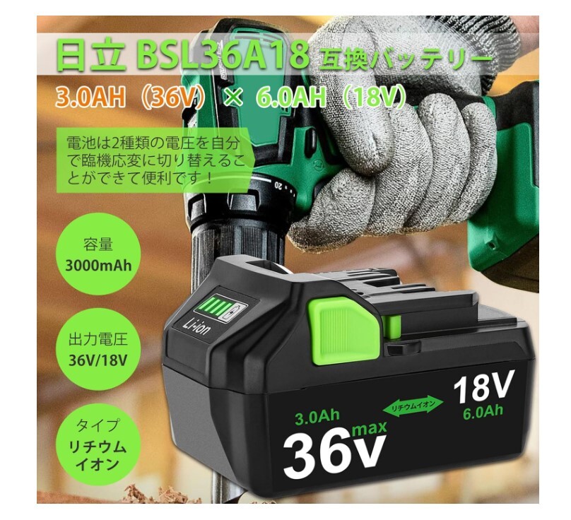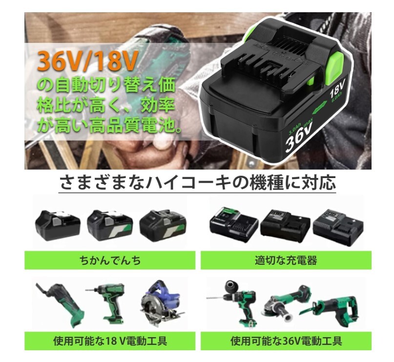 【日立 36v バッテリー 互換】36 v/18 vのバッテリを自動的に切り替え、効率的に動作。電池サプライヤーとして、当店で提供している製品はすべてメーカーの元包装で、中間業者が差額を稼いでおらず、価格で絶対的な優位を占めており、できるだけお客様のためにより満足な購入機会を目指しています。ご安心購入してください。