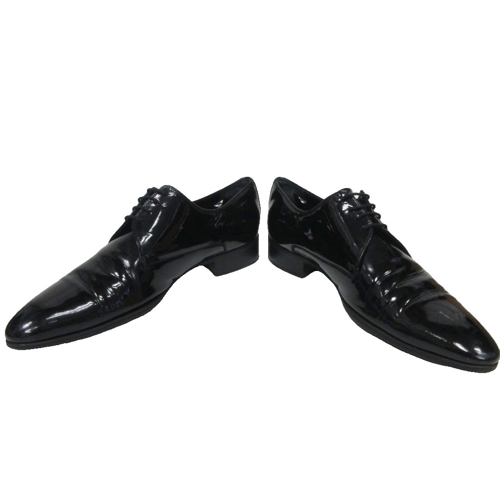 ディオールオム Dior HOMME 11EBM パテントレザー ドレスシューズ 革靴 外羽根 プレーントゥ 黒 ブラック 42 27cm IBO82 メンズ