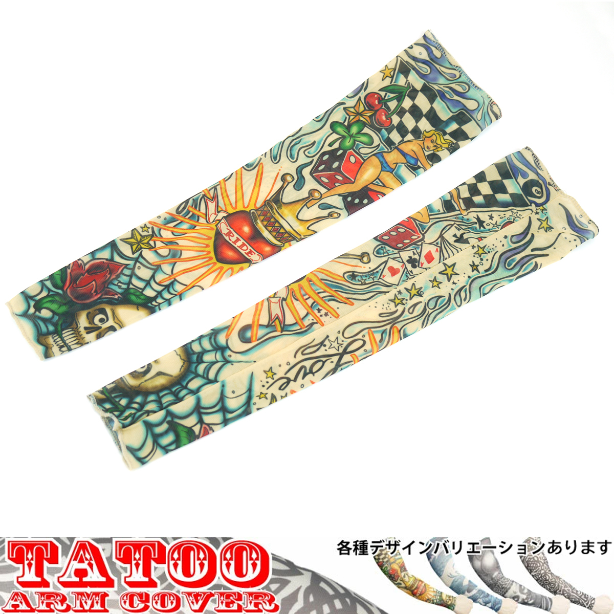 NO.04 タトゥーアームカバー 2枚セット 入れ墨 アームスリーブ ライド ダイス スカル ゆうパケット対応