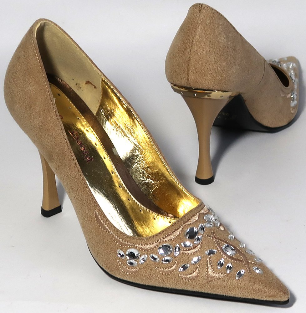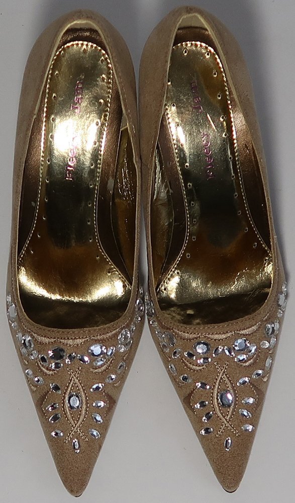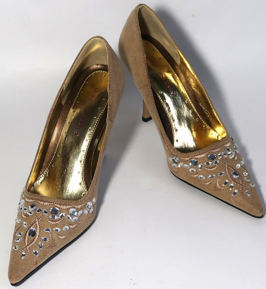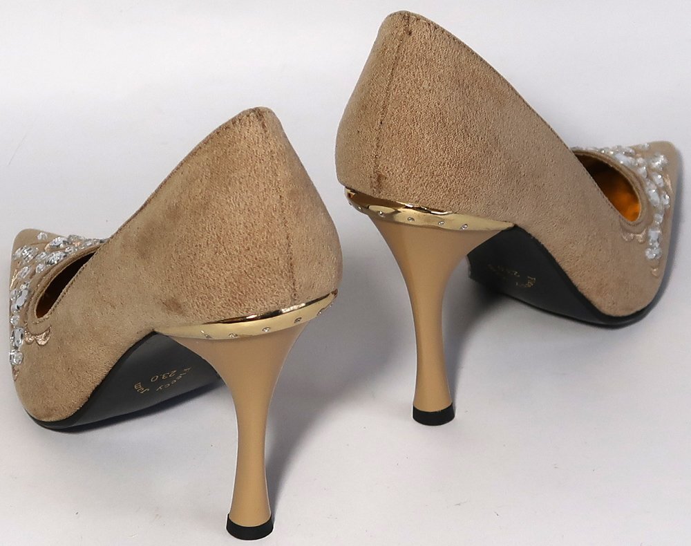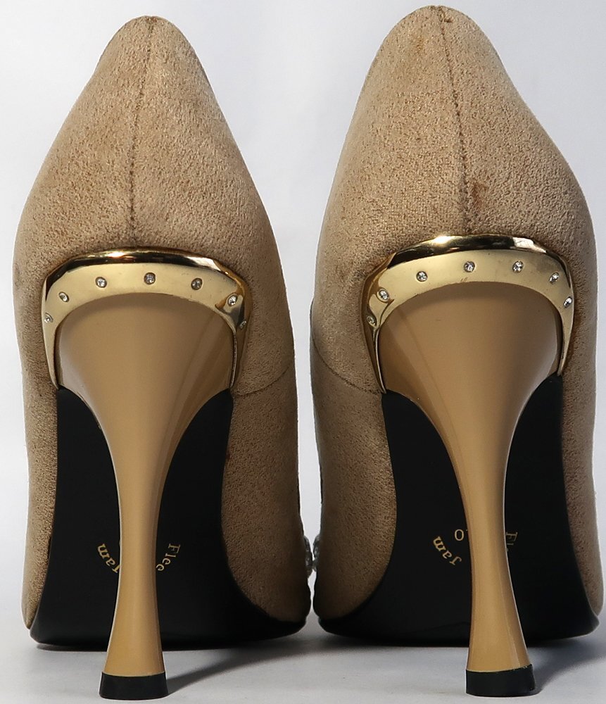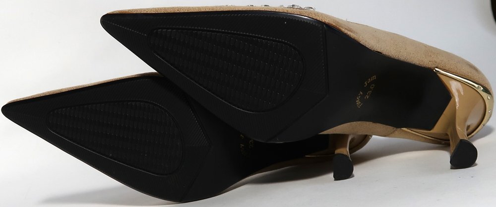 インナーソールの端の方(茶色の塗料)に生地の剥がれがあります。擦れば剥がれてきます。ヒール高は9.5cmくらいです。