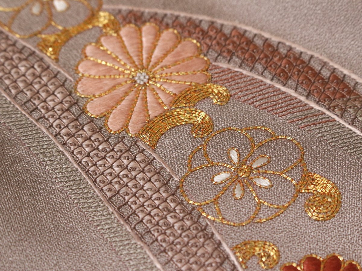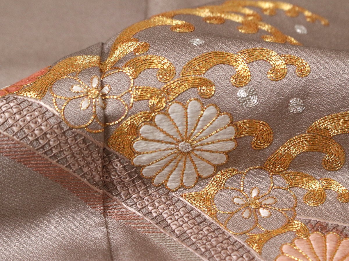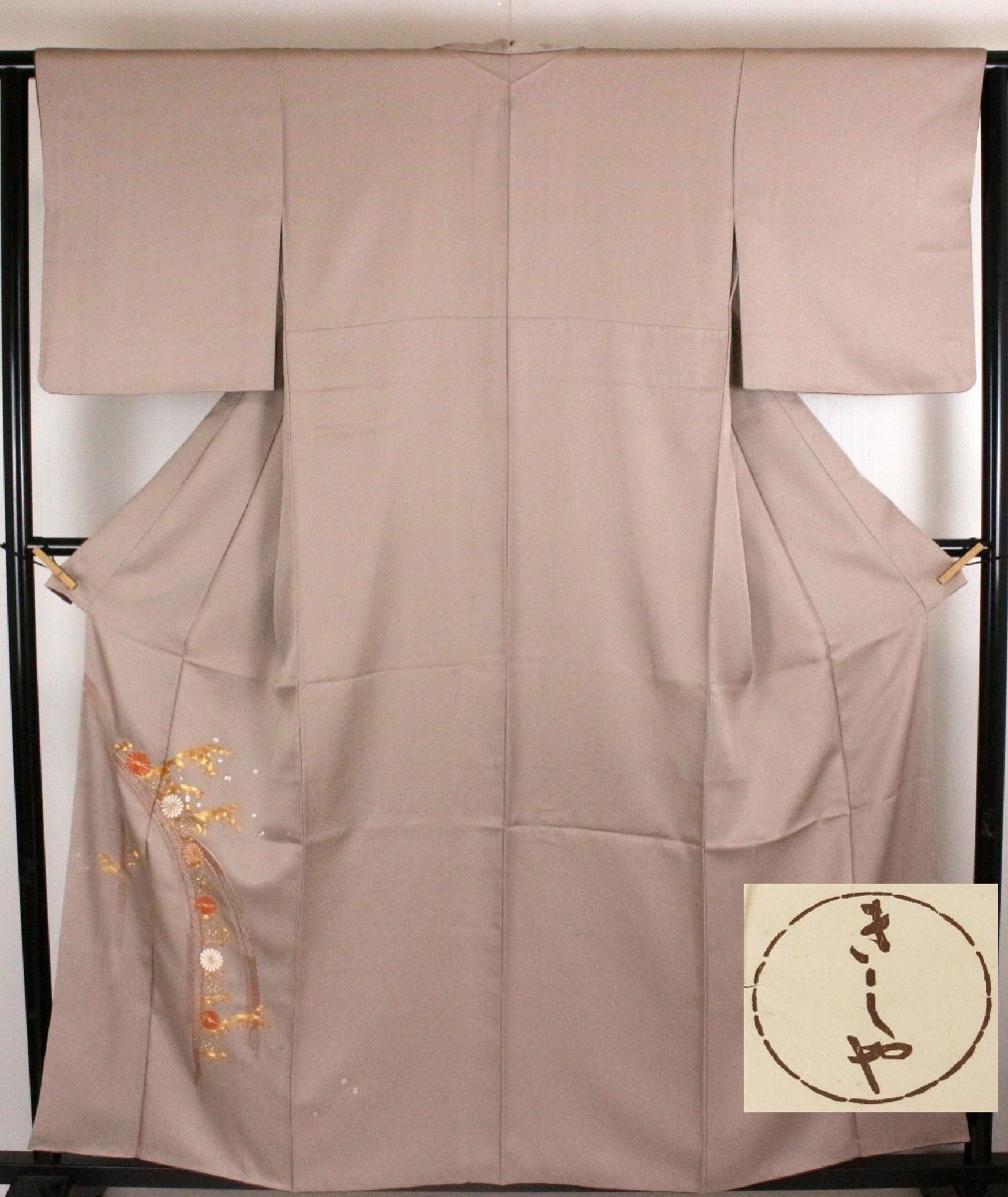 老舗「きしや」お取扱の、正絹訪問着のご紹介です。 やわらかなベージュ系の地色に、上品な光沢を湛えた正絹ならではの気品が漂います。 裾まわりには菊や桜を思わせる花々が金駒刺繍により立体的に表現され、煌びやかな金糸とともに華やぎを添えています。 瑞々しい花模様に流れるような曲線が加わり、気品と優雅さが同居する意匠となっております。 老舗「きしや」お取扱いならではの確かな品質と洗練された意匠は、末永くご愛用いただける逸品です。 お目に留まりましたら、是非ご検討下さいませ。 【きしや】 大正13年創業の銀座の老舗呉服店。 創業以来、伝統芸能文芸界など、各界の著名人に愛されています。 独特の淡くやさしい色合いは「きしや好み」と呼ばれ、「きしやオリジナル」の柄にこだわり、本物志向のきものや帯を作りつづけています。 着物愛好家の憧れの名店です。 ※撮影時の部屋の照明によって画像の色に若干の差がございます。色味に差がございますことをご了承のうえご検討下さいませ。 …状態… 目立つ難なし。ほぼ新品。 ※全くの新品ではございませんので、記載のない変色やスレ、ヤケ、その他僅かな難がある場合がございます。そのような理由でのキャンセルはお受けできませんので、ご了承の上ご検討お願いいたします。 |