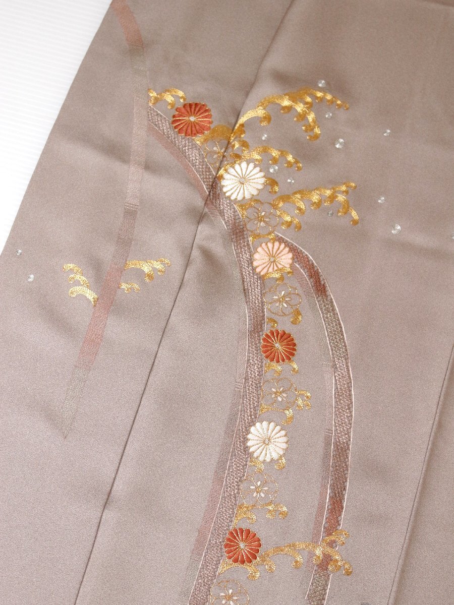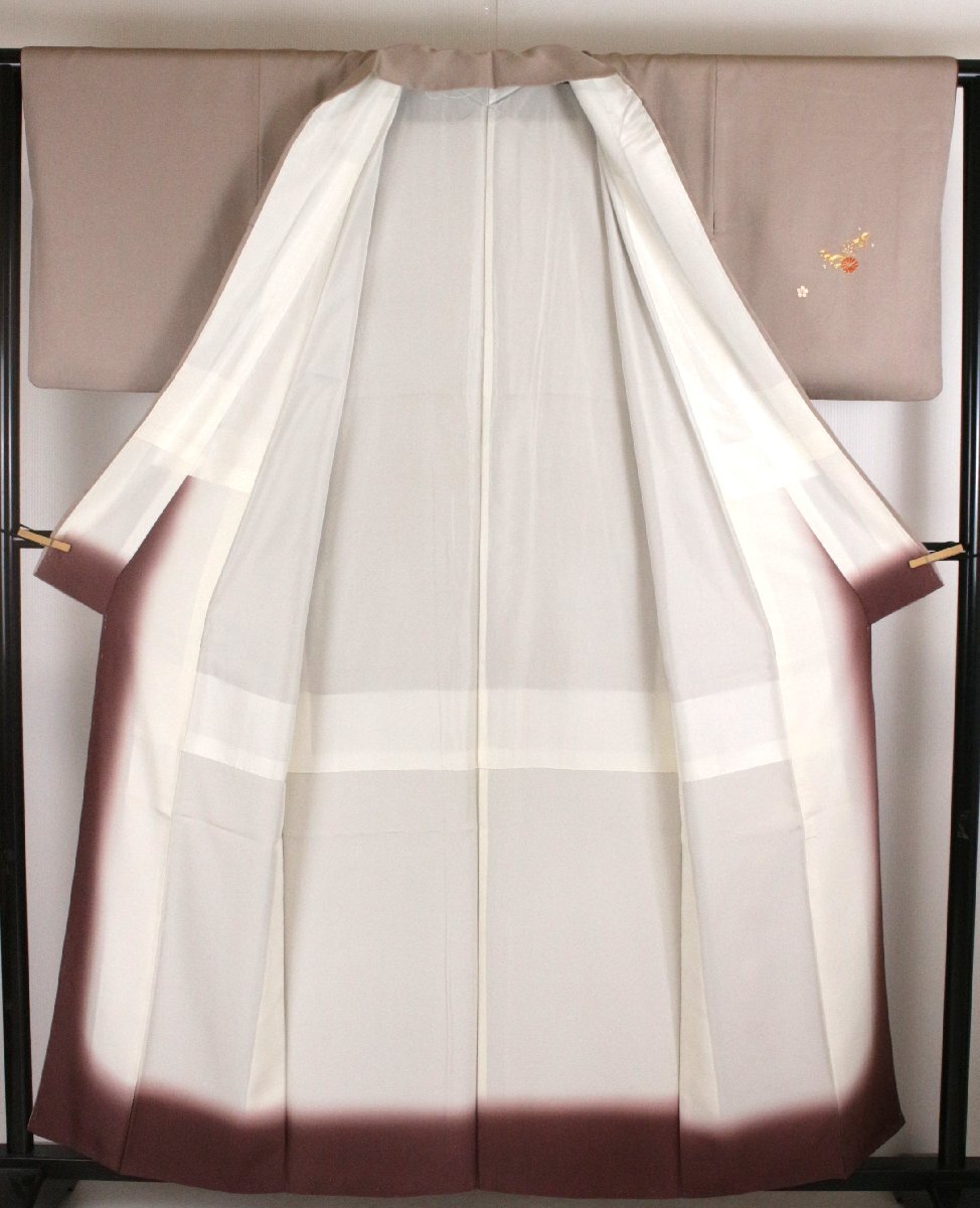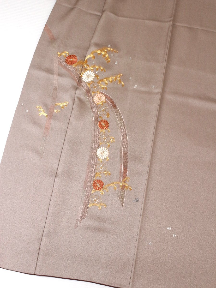 老舗「きしや」お取扱の、正絹訪問着のご紹介です。 やわらかなベージュ系の地色に、上品な光沢を湛えた正絹ならではの気品が漂います。 裾まわりには菊や桜を思わせる花々が金駒刺繍により立体的に表現され、煌びやかな金糸とともに華やぎを添えています。 瑞々しい花模様に流れるような曲線が加わり、気品と優雅さが同居する意匠となっております。 老舗「きしや」お取扱いならではの確かな品質と洗練された意匠は、末永くご愛用いただける逸品です。 お目に留まりましたら、是非ご検討下さいませ。 【きしや】 大正13年創業の銀座の老舗呉服店。 創業以来、伝統芸能文芸界など、各界の著名人に愛されています。 独特の淡くやさしい色合いは「きしや好み」と呼ばれ、「きしやオリジナル」の柄にこだわり、本物志向のきものや帯を作りつづけています。 着物愛好家の憧れの名店です。 ※撮影時の部屋の照明によって画像の色に若干の差がございます。色味に差がございますことをご了承のうえご検討下さいませ。 …状態… 目立つ難なし。ほぼ新品。 ※全くの新品ではございませんので、記載のない変色やスレ、ヤケ、その他僅かな難がある場合がございます。そのような理由でのキャンセルはお受けできませんので、ご了承の上ご検討お願いいたします。 |