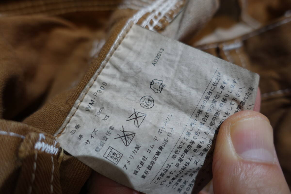 サイズはXS ウエスト平置きで38 股下25 股上28 裾幅27 状態は使用感ありです。シワありです。若干けば立った感じあり。全体的に若干色落ちした感じありで、これが使用感によるものか、製品染めの風合いなのか不明です。ポインターなのでUSA製で、ギャルソン単単位の商品よりステッチが荒い感じです。(それがアジがあって良い雰囲気です)よろしくお願いします!