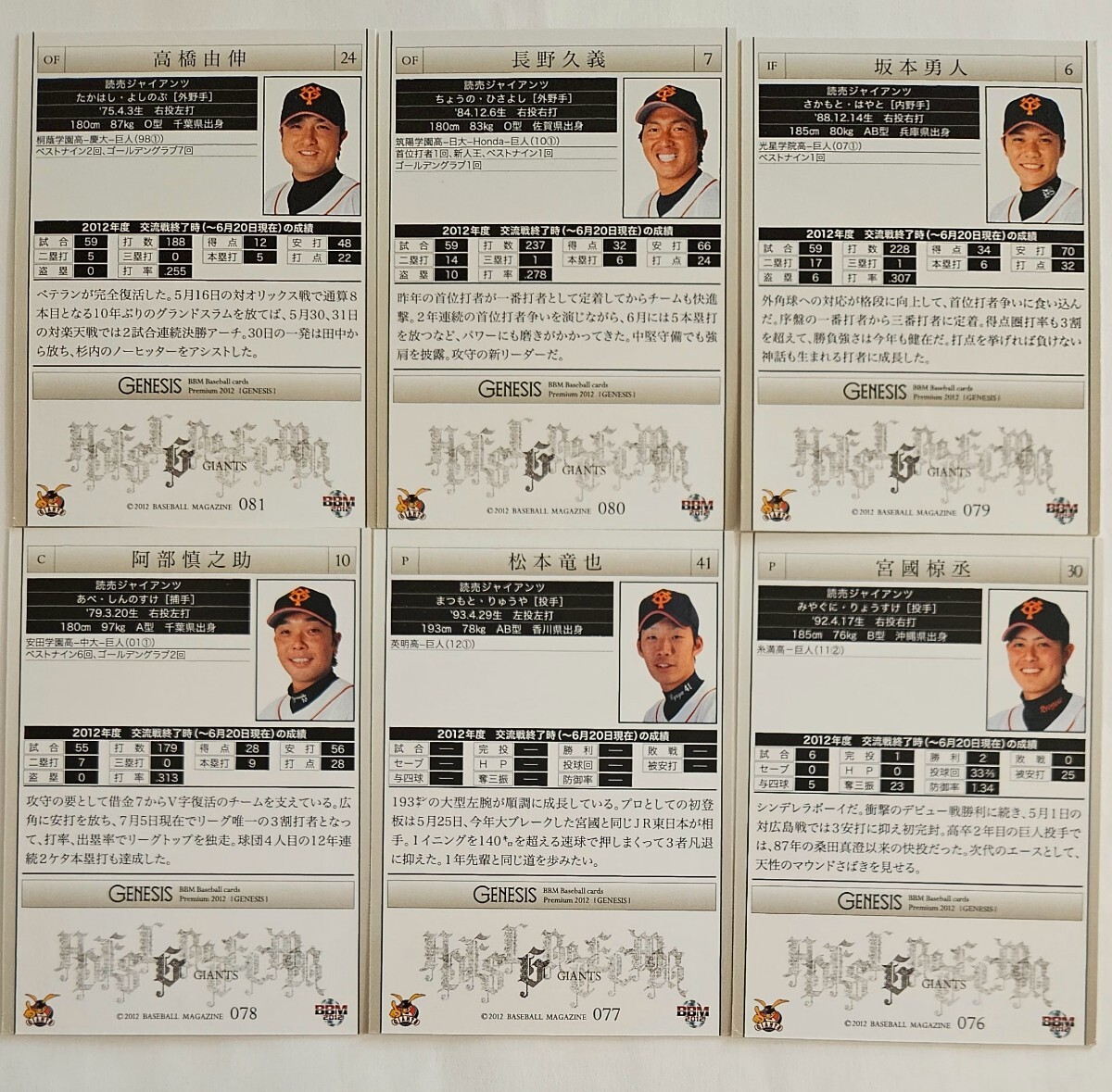 2012年BBM ジェネシス 巨人レギュラー12枚セット 高橋由伸、長野久義、坂本勇人、阿部慎之助、内海哲也など 巨人 ジャイアンツ