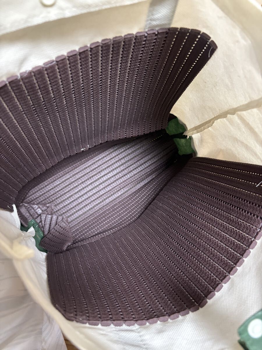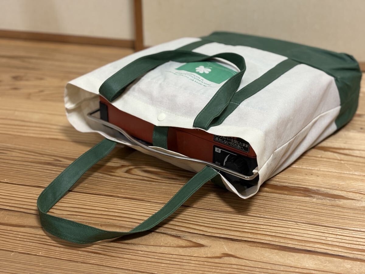 バッグは市販の手提げを加工して作ったもので、内側にはクッションが施されています。