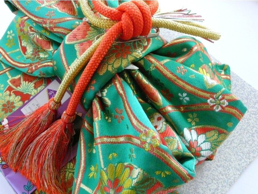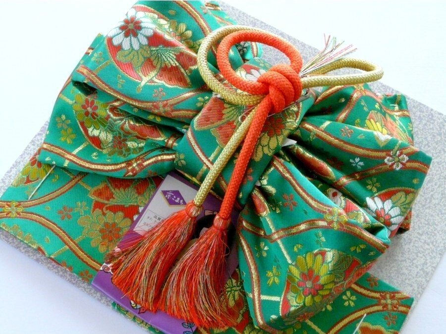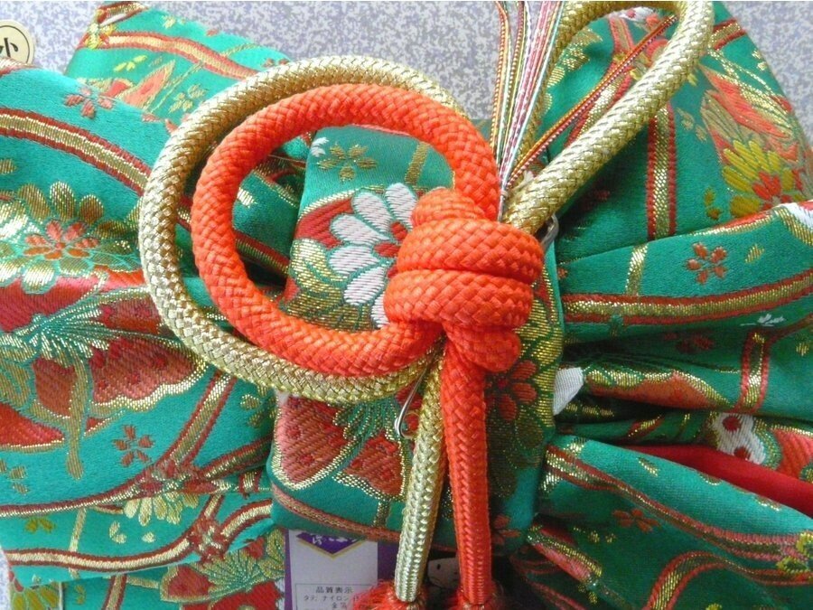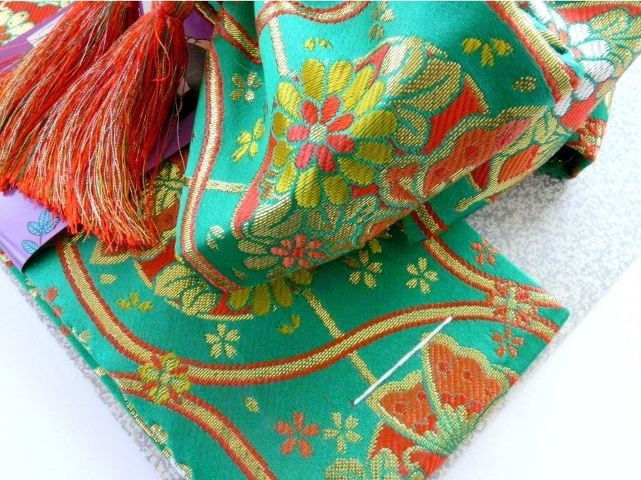 結び帯(作り帯) 七五三 3才 女の子 緑色に立涌 花柄 012