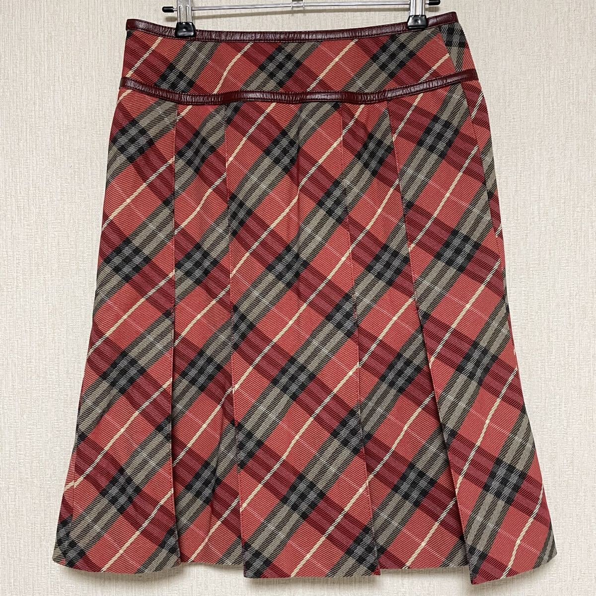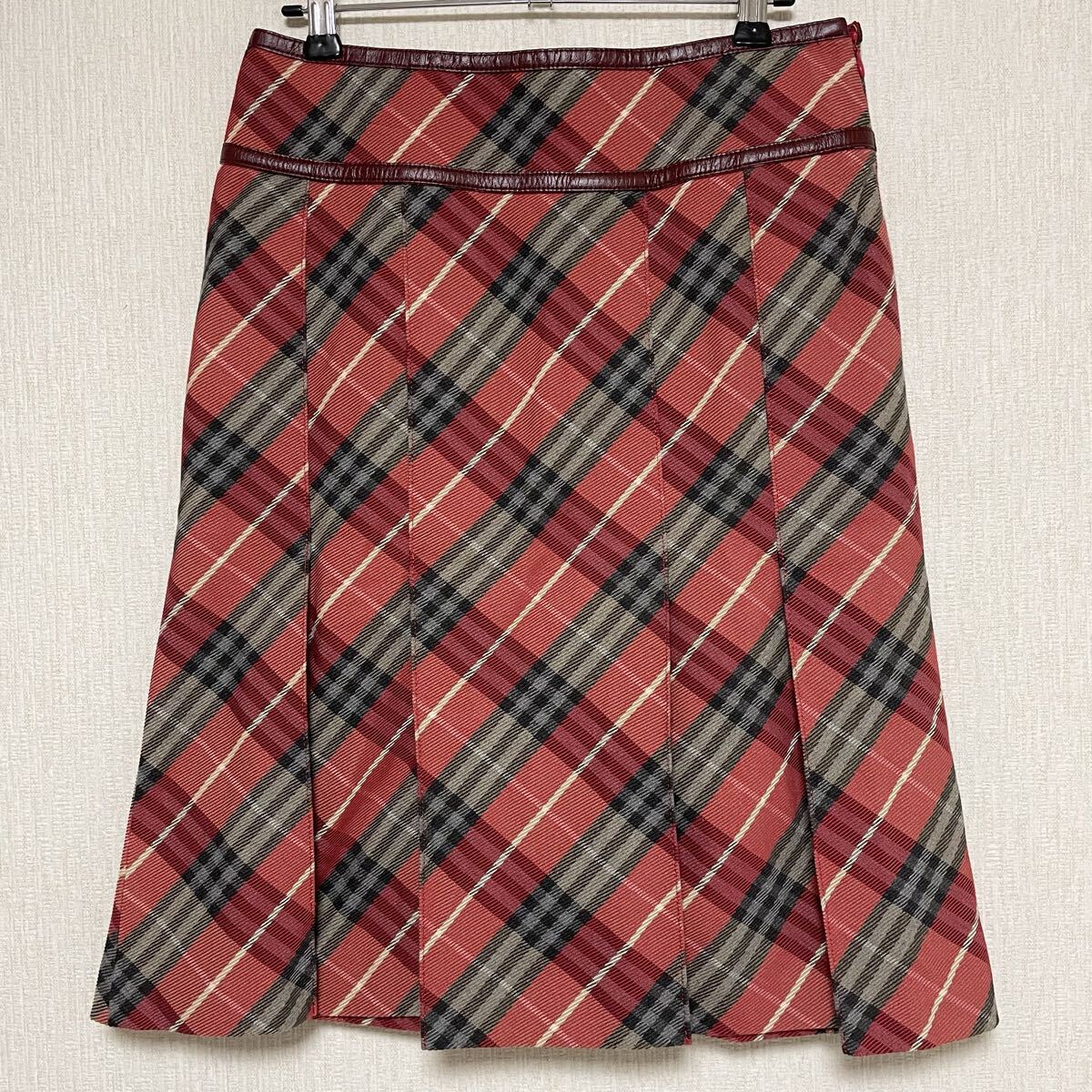即決☆BURBERRY バーバリー ブルーレーベル ノバチェック プリーツ スカート 38 美品 レッド M