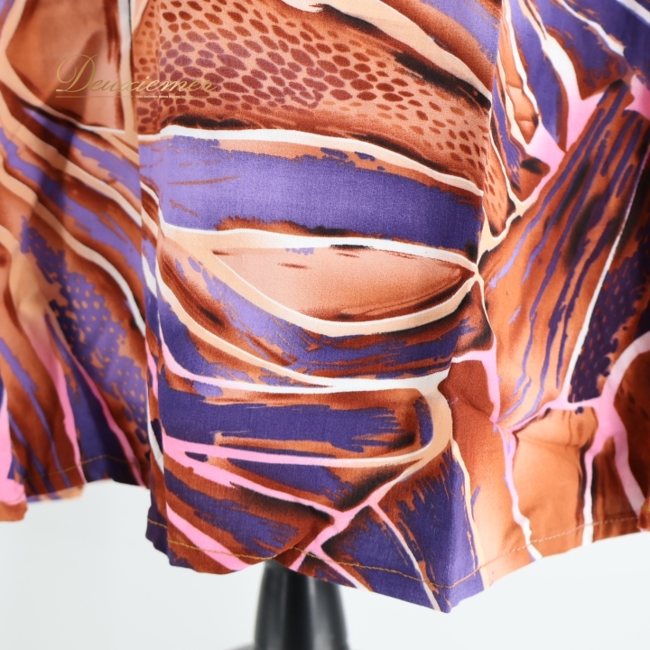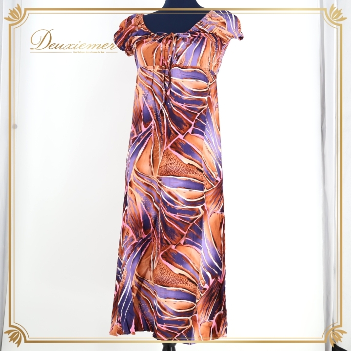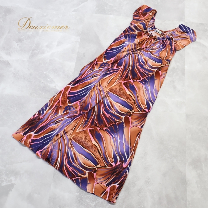 | 【商品名】フラダンス衣装 ワンピース ドレス 【サイズ】M表記 平置き実測:総丈約110cm(裾~肩部まで)、身幅約36cm ※実測の為、多少の誤差はご了承ください 【仕様】 ・伸縮性無し 【品質表示】 レーヨン100% ------------------------------------ 【ポイント】 ▽Maunaloa マウナロア ▽ブラウン×パープル×ピンク×ホワイト ▽軽い生地で動きやすい ------------------------------------ 【撮影時使用トルソー】 種 類:女性用トルソー9号 (一般的に使用されるサイズです) サイズ:肩幅約37cm、バスト約88cm、ウエスト約66cm、ヒップ約89cm |