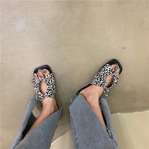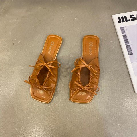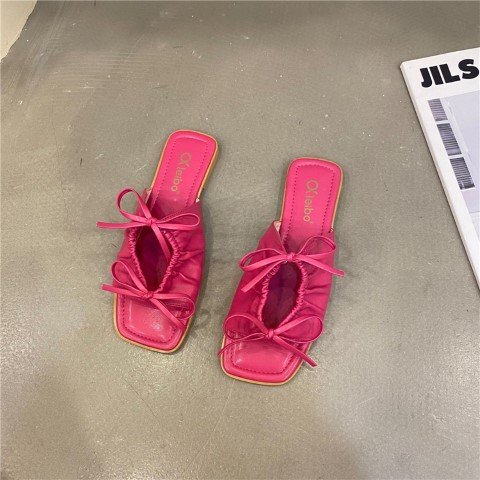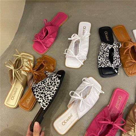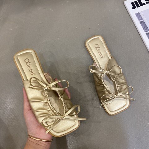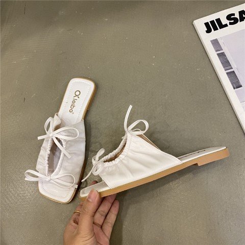 スリッパ サンダル レディースシューズ 蝶結び ビーチシューズ フラット スクエアトゥ 37 ホワイト