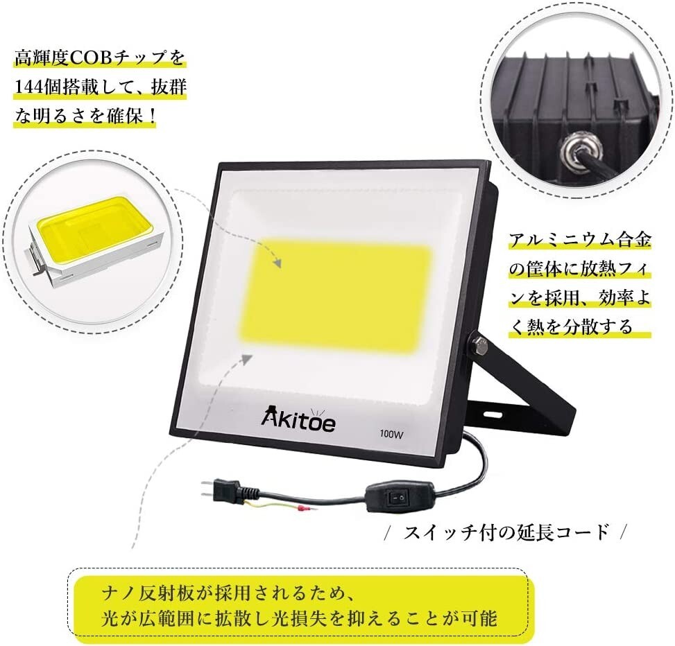 ◆軽薄化LED投光器:1.5KGの軽量だから壁への負担を掛けずに壁掛けが可能、駆動内蔵設計で投光器の厚さはわずか4.5CMでよりスッキリと設置できます。