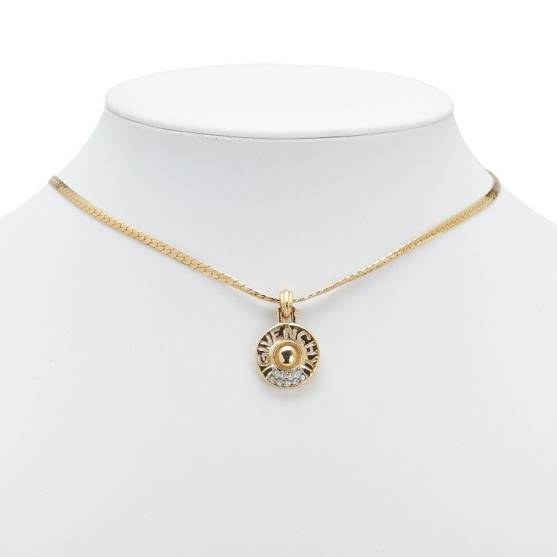 ジバンシー ロゴ ラインストーン ネックレス ゴールド メッキ レディース Givenchy 【中古】