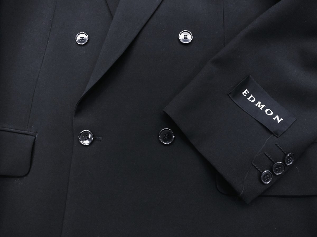 特色 ・長大毛織の高級素材SuperTex使用 ・黒を極めたウルトラブラック ・上着裏は本台場付き 【仕様】4釦1掛けダブル秋冬(スリーシーズン)礼服 【サイズ】 AB5(胸回96cm・腰回86cm・身長170cm) 【シーズン】スリーシーズン 礼服 【上 着】4釦ダブル ノーベンツ仕様 【裏素材】ポリエステル100% 【パンツ】アジャスター機能付き(前後に約12㎝調節可能)膝裏付きワンタック仕上げ。 【縫製】日本のアパレルメーカーの企画により中国で生産。 詳細な寸法 上着:胸囲114・胴廻り102.5・着丈72.5・肩幅48.8・袖丈59.5 パンツ:ウエスト86・股上26.5・股下89・渡り幅34・膝巾24.8・裾口22.4 | ||||