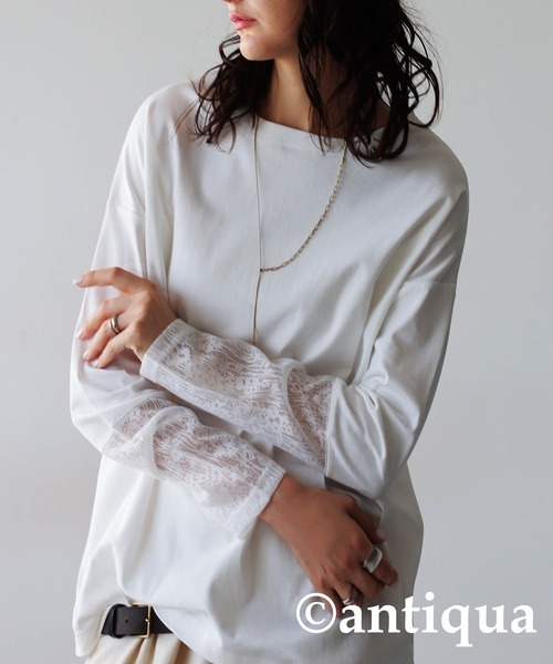 「antiqua」 「patterntorso」長袖カットソー P オフホワイト レディース
