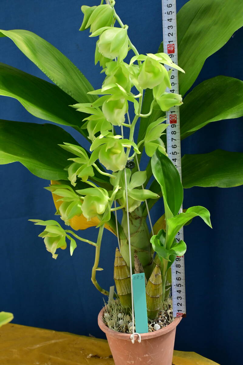 (Clowesia russelliana x Catasetum pileatum)鮮ライトグリーン 下垂性 太いバルブ5バルブ 4号鉢 120サイズ
