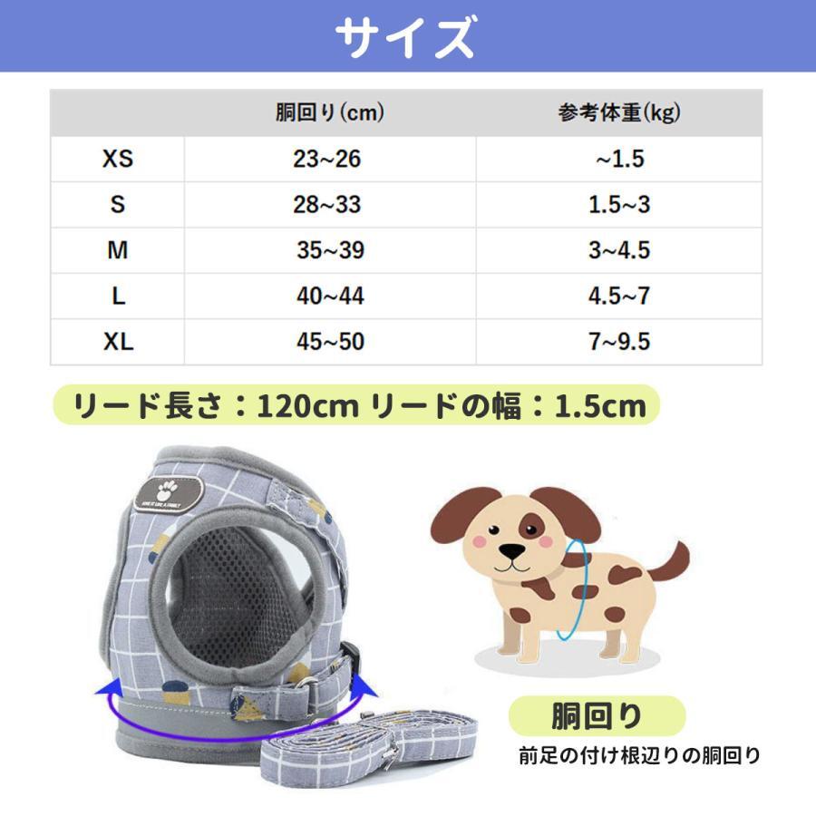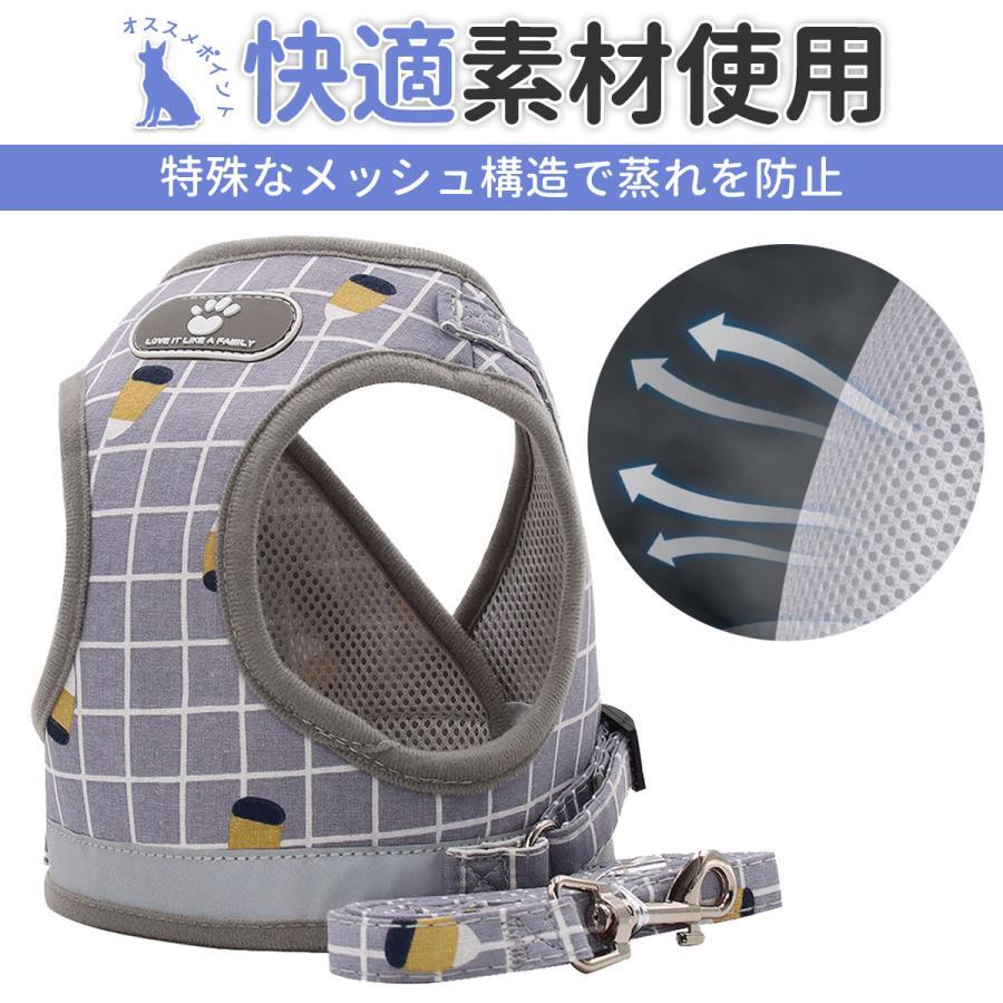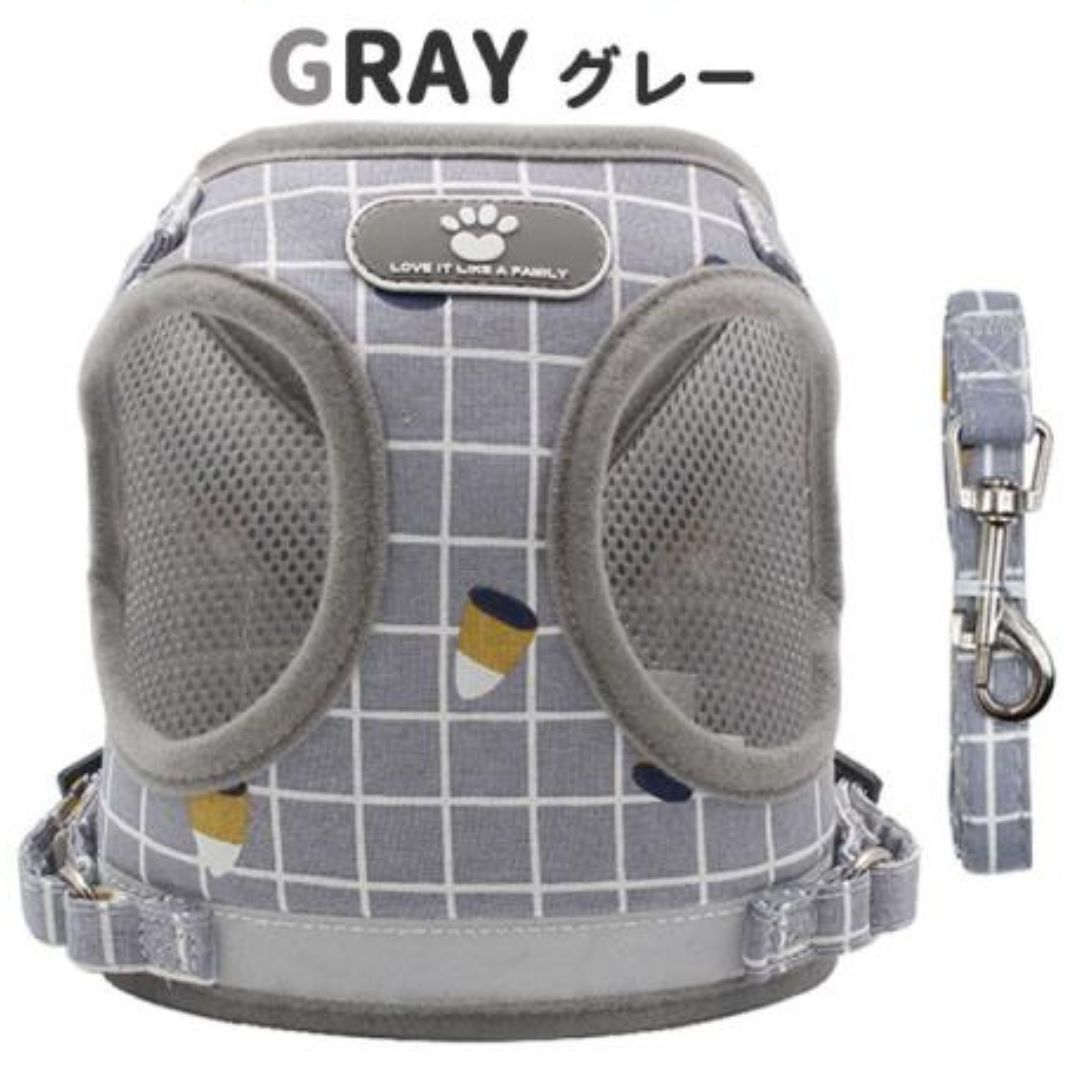 【ハーネス グレー Sサイズ】 犬 おしゃれ 脱げない リード 小型犬 中型犬 大型犬 簡単装着 犬用 胴輪 首輪
