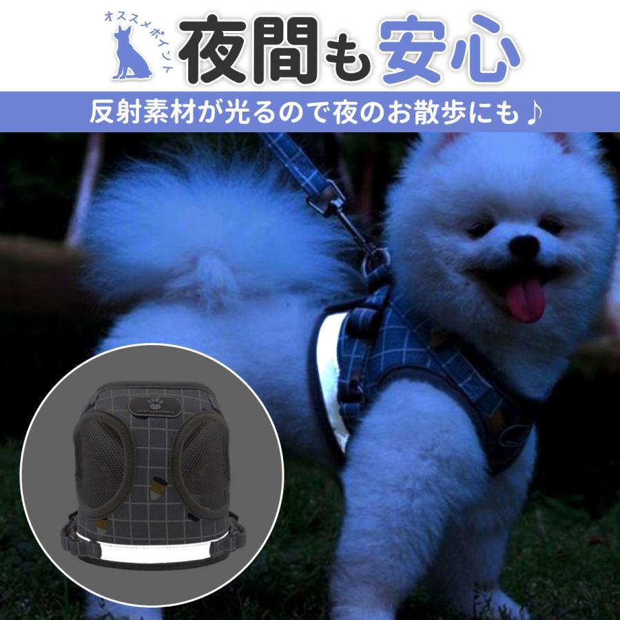 □暗がりで光る反射布付きなので夜でも安心して散歩ができる。