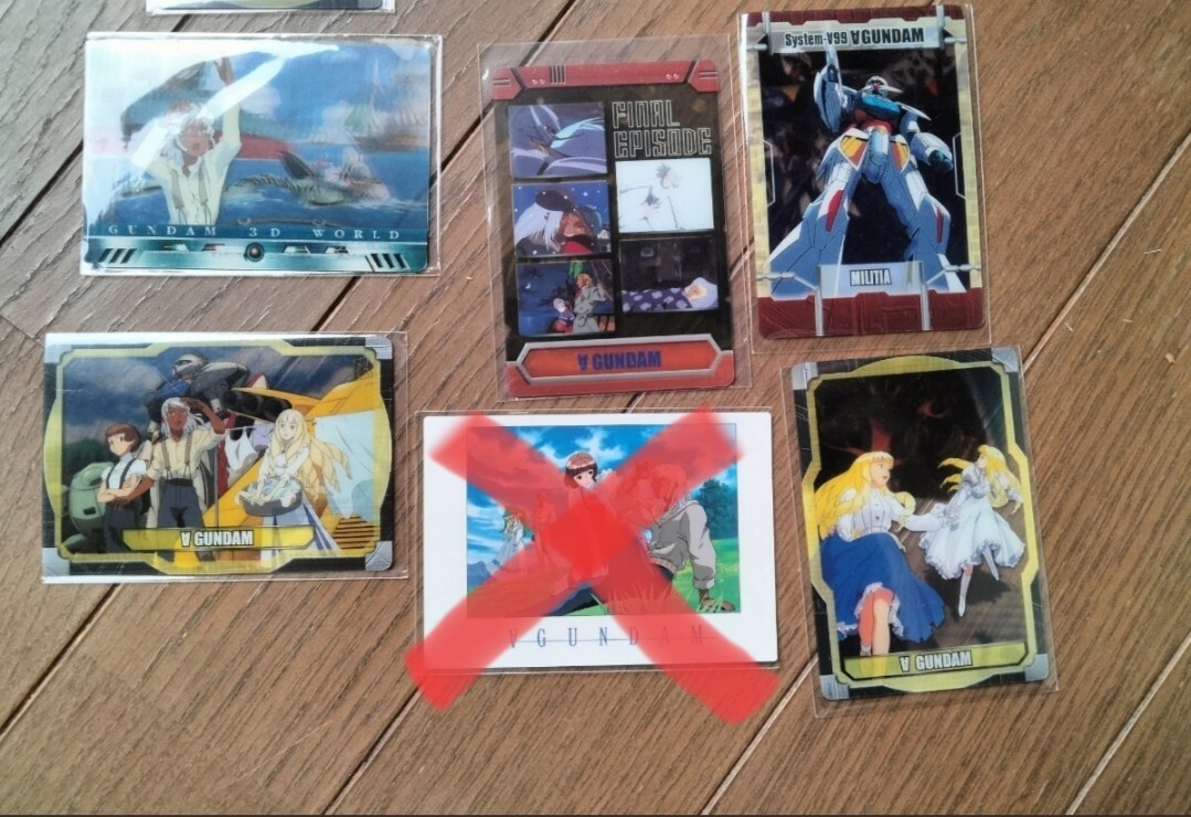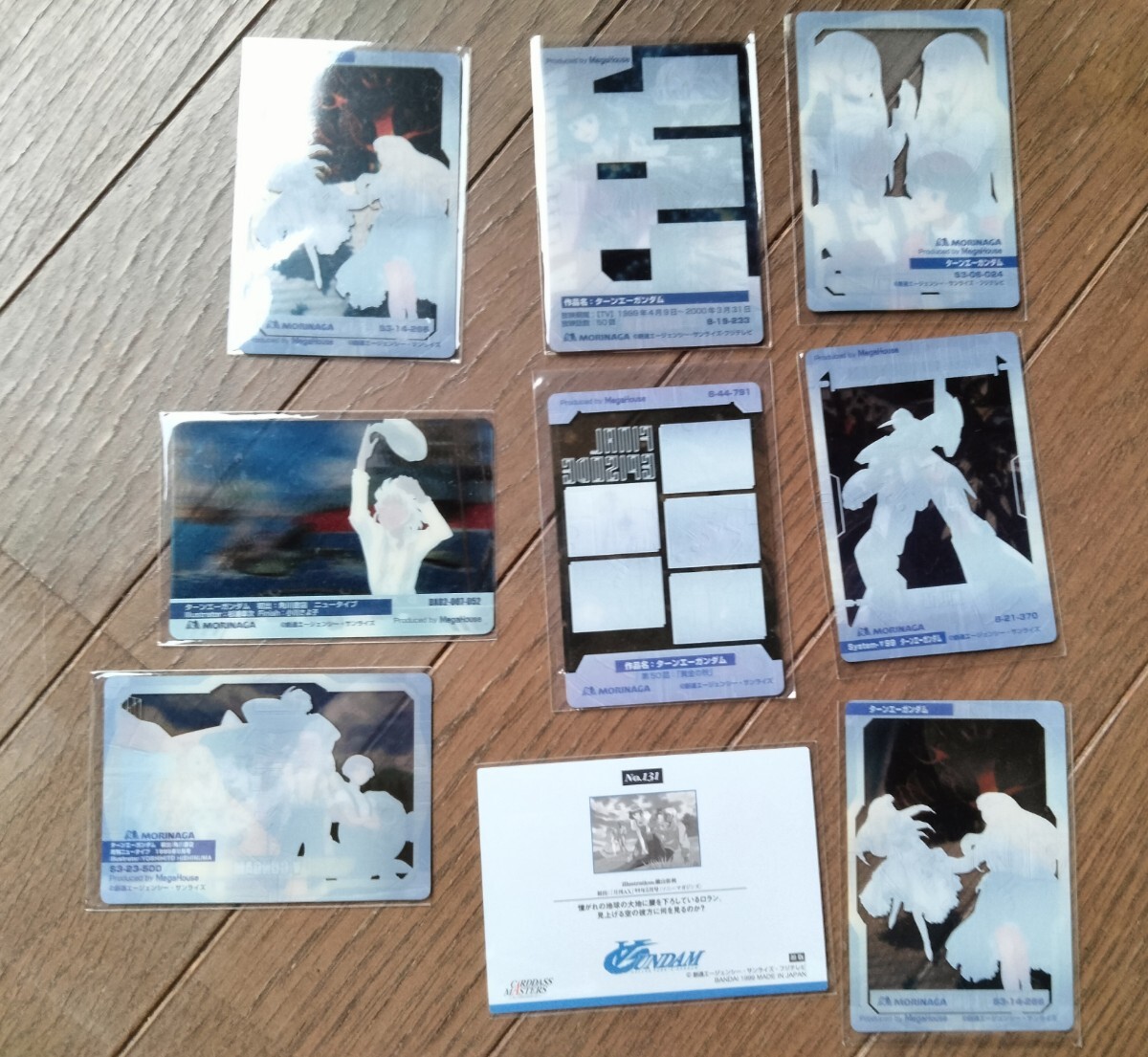 ターンエーガンダムのウエハースカード7枚、カードダス1枚の8枚セットです