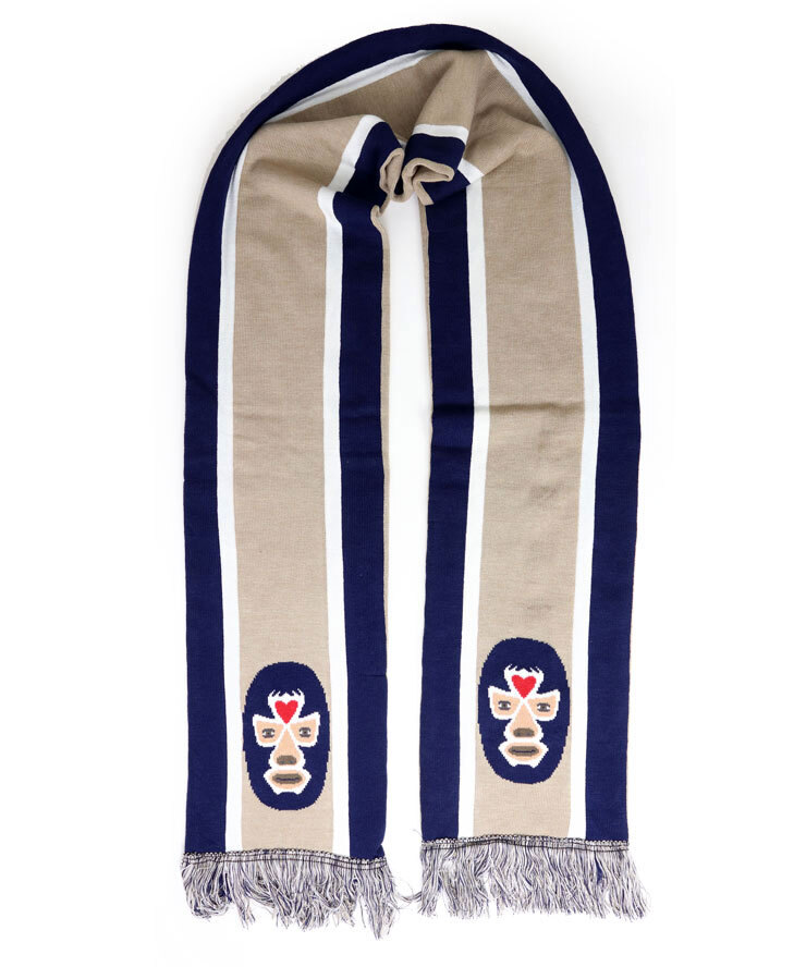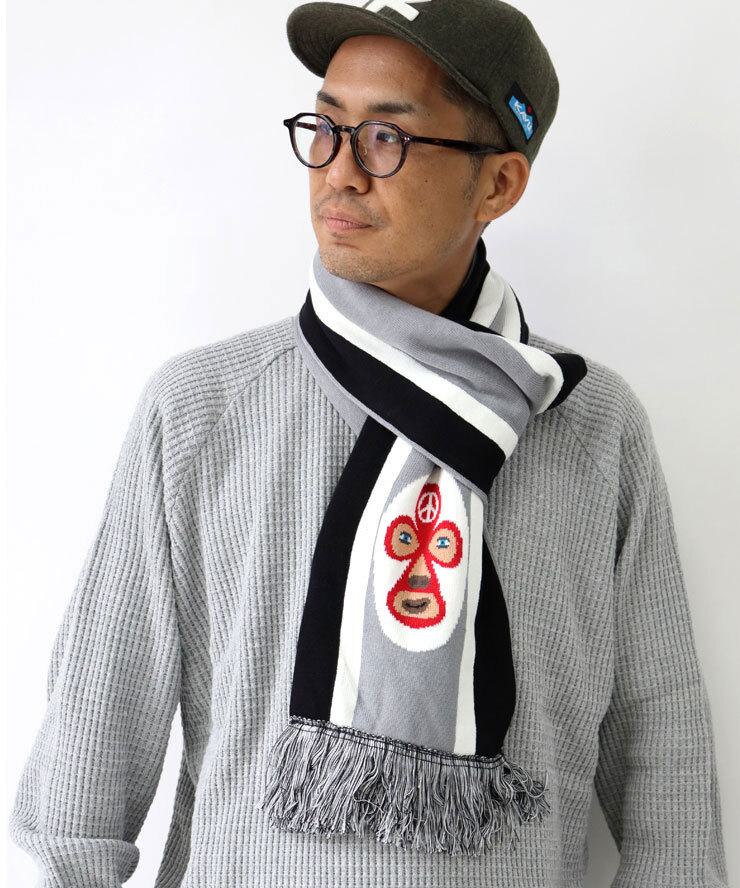 ジムマスターから登場した、覆面レスラーとブランドロゴを組み合わせた両面デザインのサッカーマフラー。リバーシブル仕様なので、その日の気分やスタイルに合わせて使い分けできるのが魅力です。