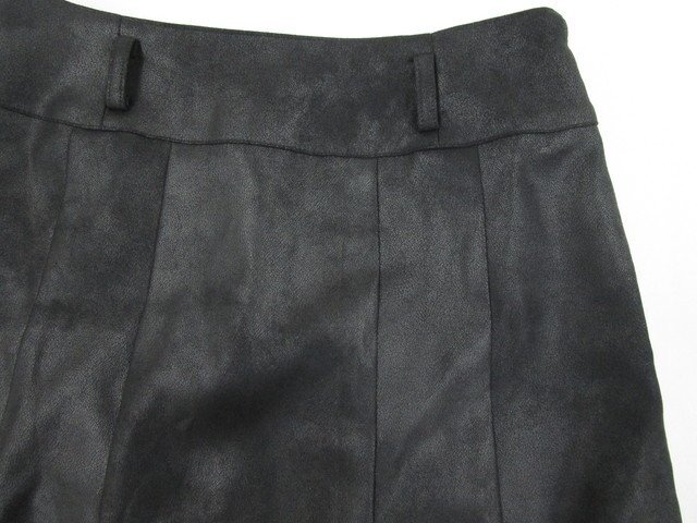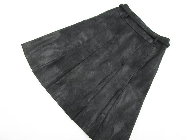 ひざ丈 フェイクレザーフレアスカート 36 ブラック