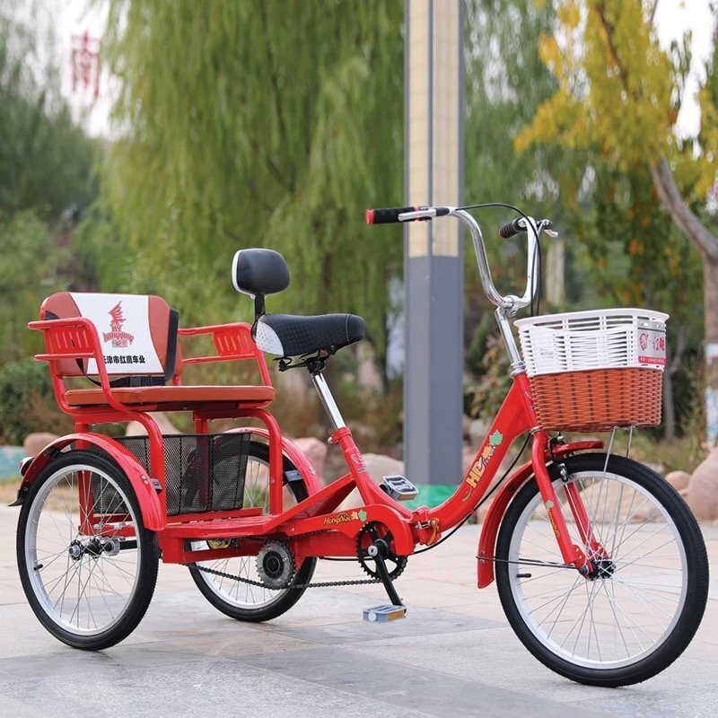 新入荷☆20インチ三輪自転車 座席高さ調節可能 アショッピングバスケット付き 大人用 高齢者用 三輪車 座席付き 背もたれ シートベルト 122