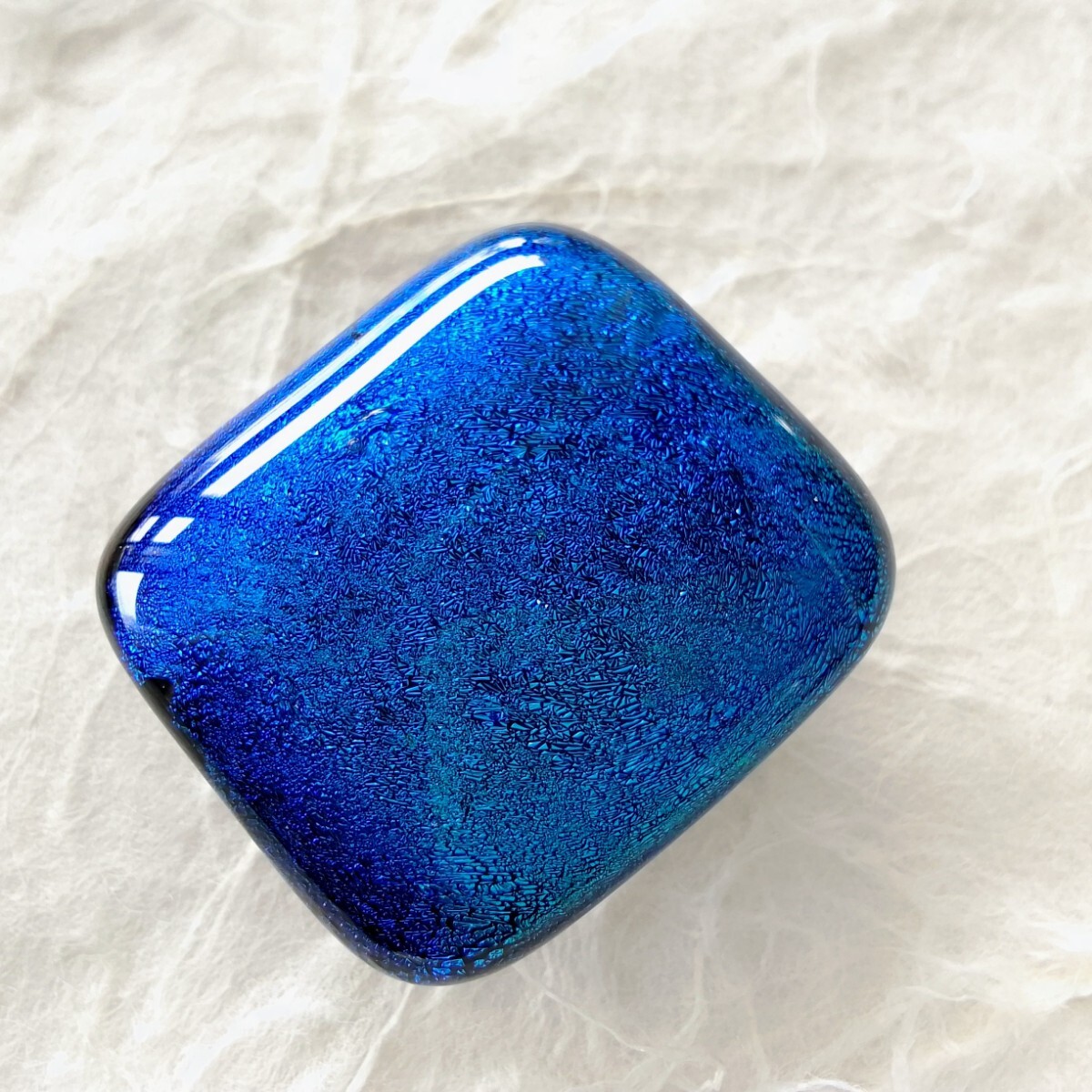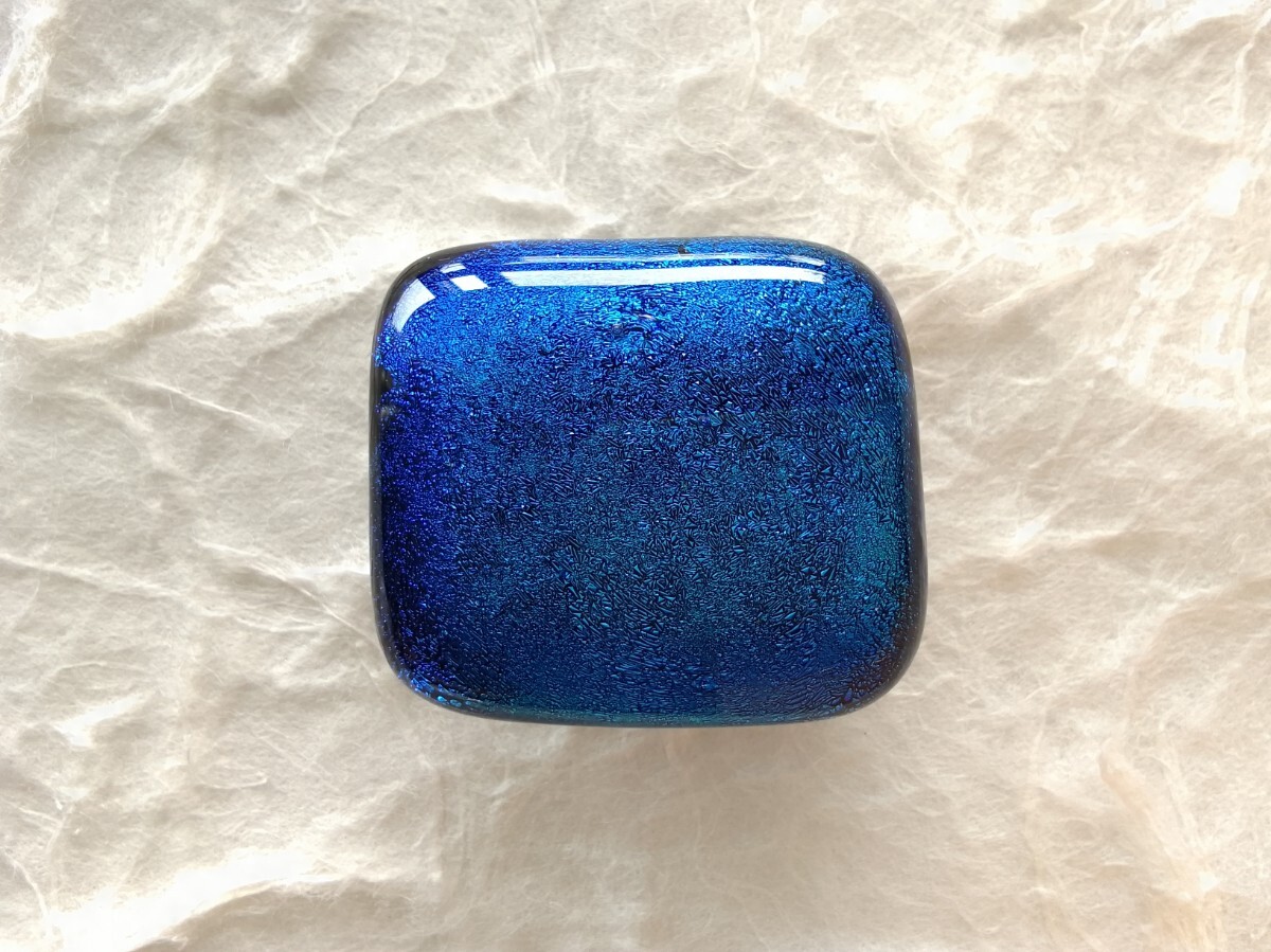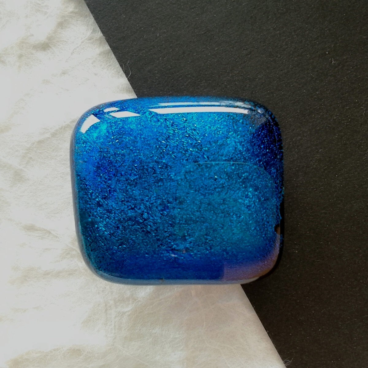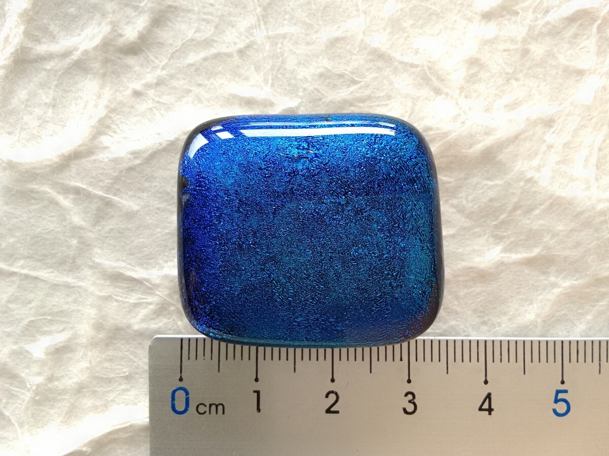 美しいダイクロガラスを電気炉で焼いた帯留め。