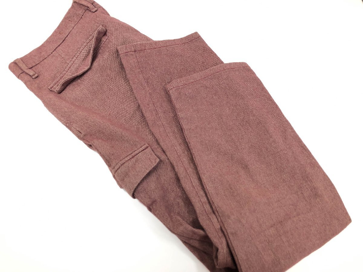 ・ウエスト実寸約96センチ、股上約27センチ、渡り幅約32センチ、股下約77センチ、総丈約102センチ、裾幅約19.5センチ(裾はタタキ仕上げです)