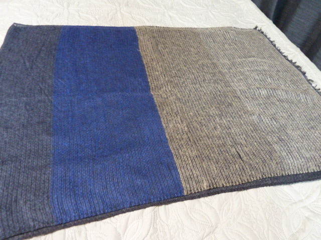 自己紹介を読んで下さいね。 aW accessories のネイビー系 ウール混 のショールす。2.3回着用で、シミや色あせやキズ等は無いと思います。美品です。サイズは、実寸、横幅60cm、170cmくらいです。素材は、ウール40、アクリル18、モヘア13、ポリエステル12、ポリ11、ビスコース5です。お手持ちのお洋服と合わせて下さいね。ゆうパケット230円発送がお安いです。ノークレームノーリターンでお願い致します。