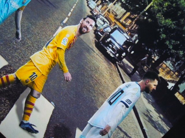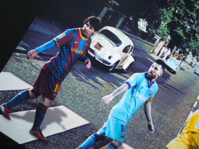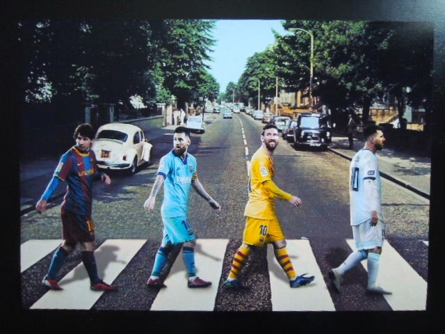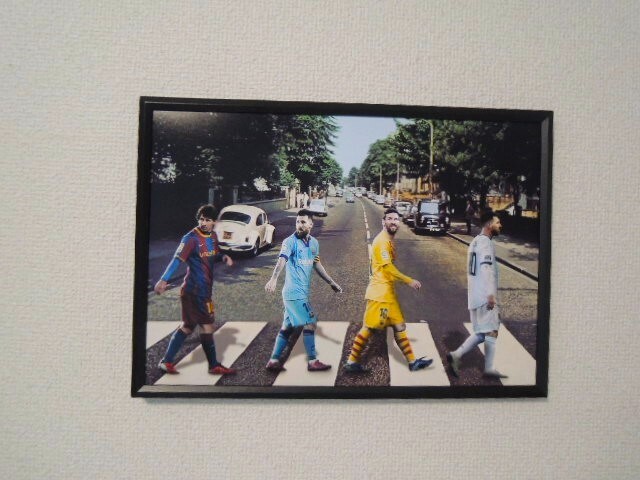 A4 額付き ポスター Lionel Messi ビートルズ Abbey Road リオネルメッシ 写真 アート メッシ
