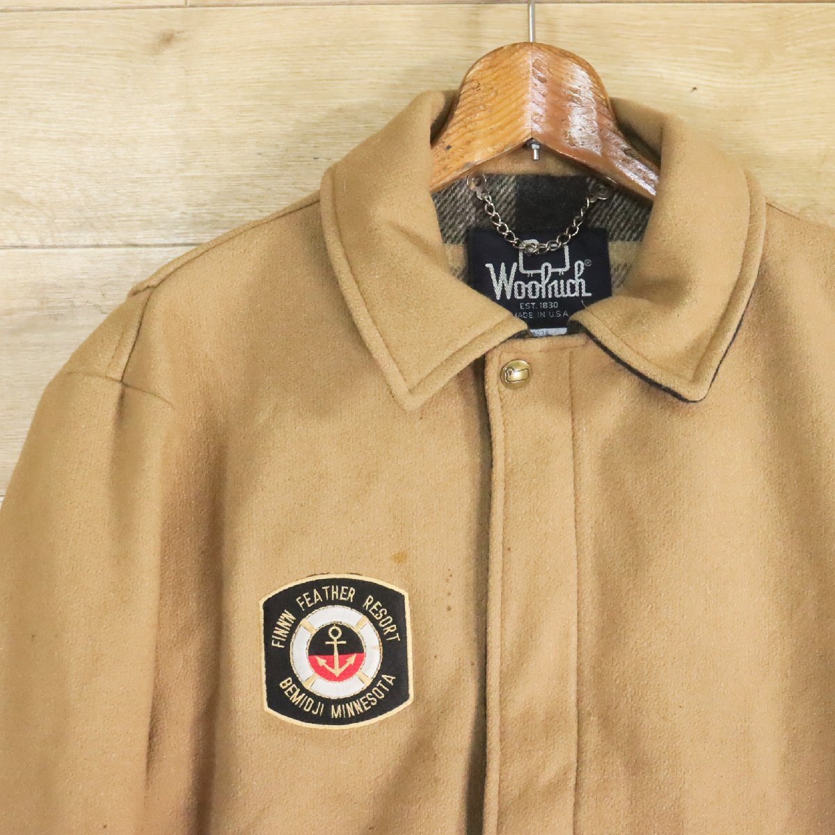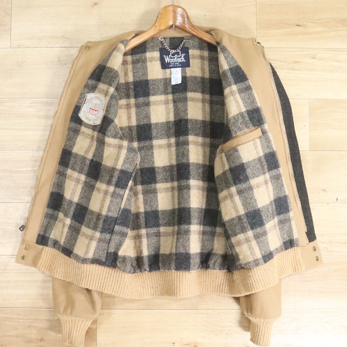@1Y/Y7.25-3 80s アメリカ製 WOOLRICH ウールリッチ バージンウール ウールジャケット ブルゾン ワッペン 裏チェック Mサイズ