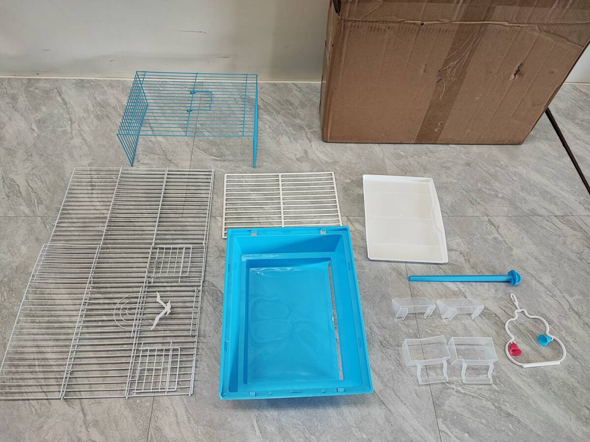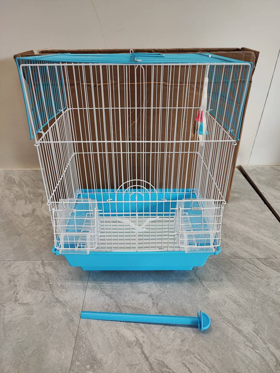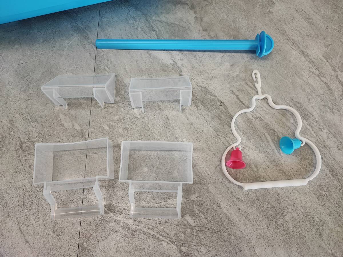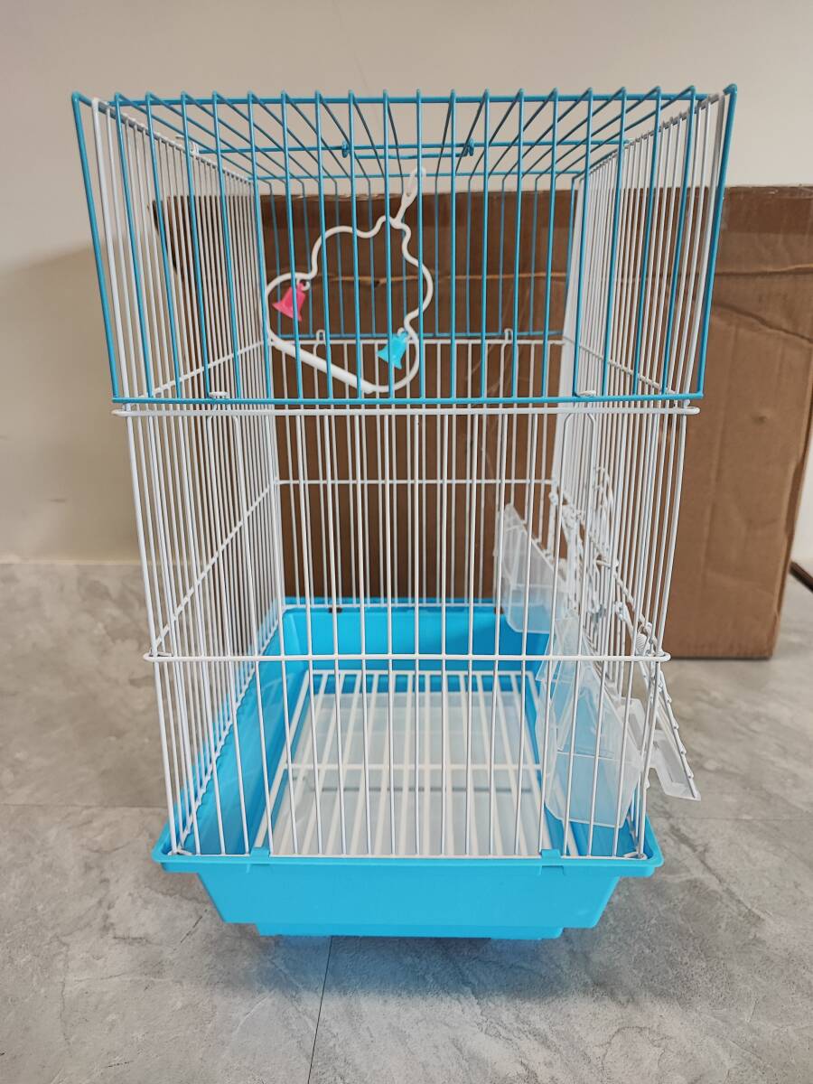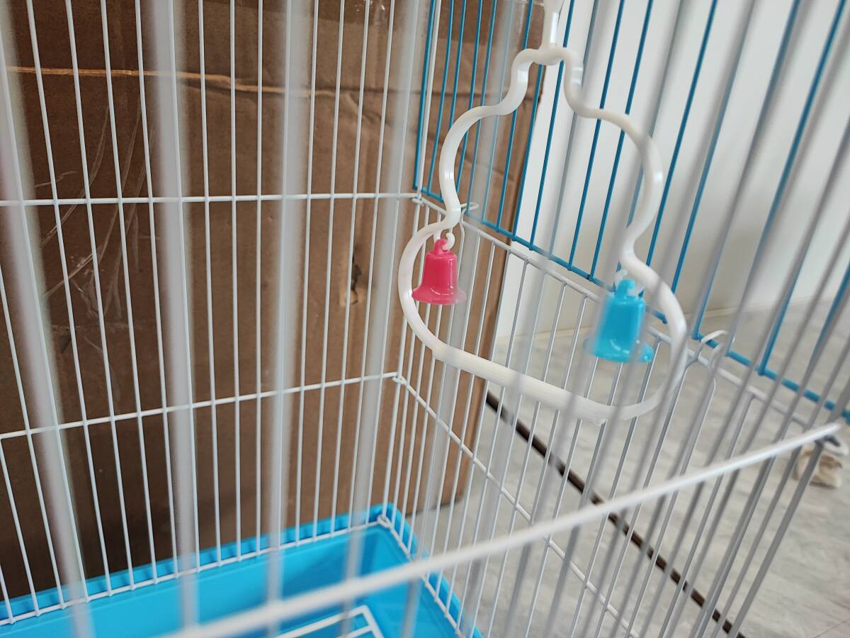| ★◆【未使用】鳥かご 小型 水色 エサ入れ おもちゃ付 インコ 文鳥他 ペット用品 100サイズ | |