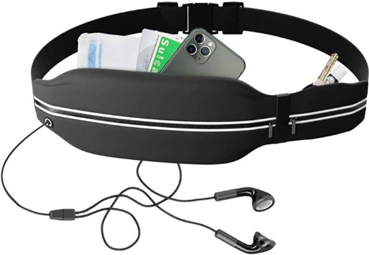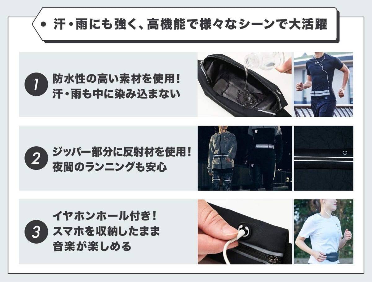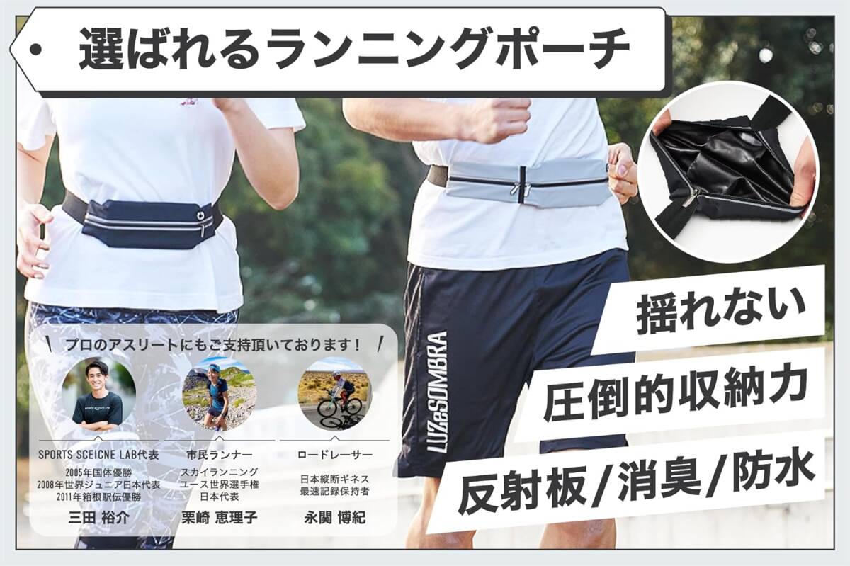 人生が激変するランニング習慣 ブラック色 二つ口 ランニング ポーチ 【駅伝優勝ランナーが認めた】 ウエスト バッグ 大容量 防水