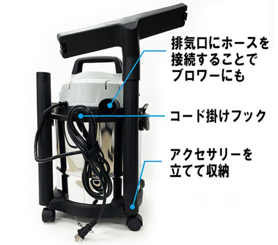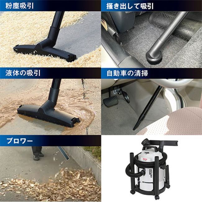 | 機能・特徴 | ・乾いたゴミも、湿ったゴミも吸引できる掃除機です。 ・丈夫で錆びにくいステンレスタンクです。 ・小回りのきくコンパクトボディーです。 ・ブロワー機能付きです。 ・ヘッド部分でホースを固定でき、収納時に便利です。 |