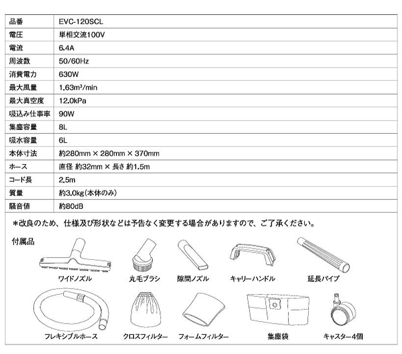 | E-Value | 乾湿両用掃除機 EVC-120SCL |