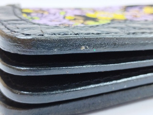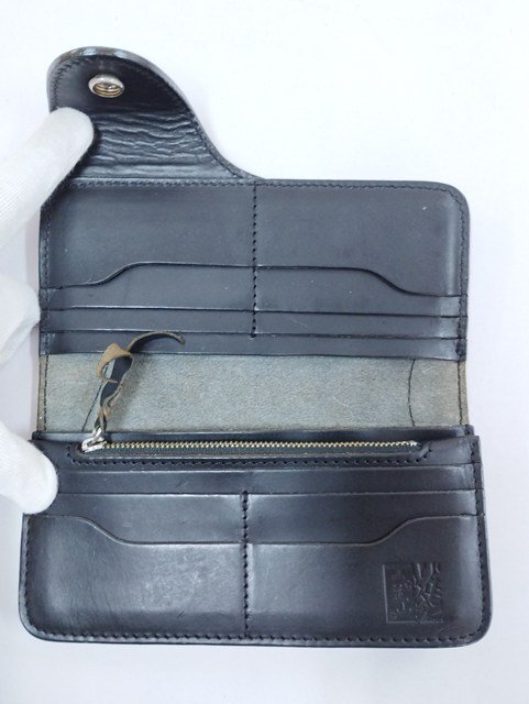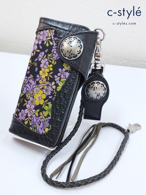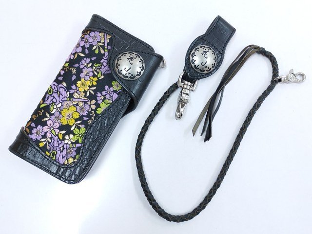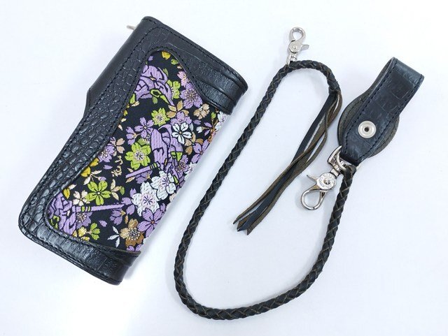 | 花山 かざん 長財布 ブラック系 和柄 花 チェーン付き |