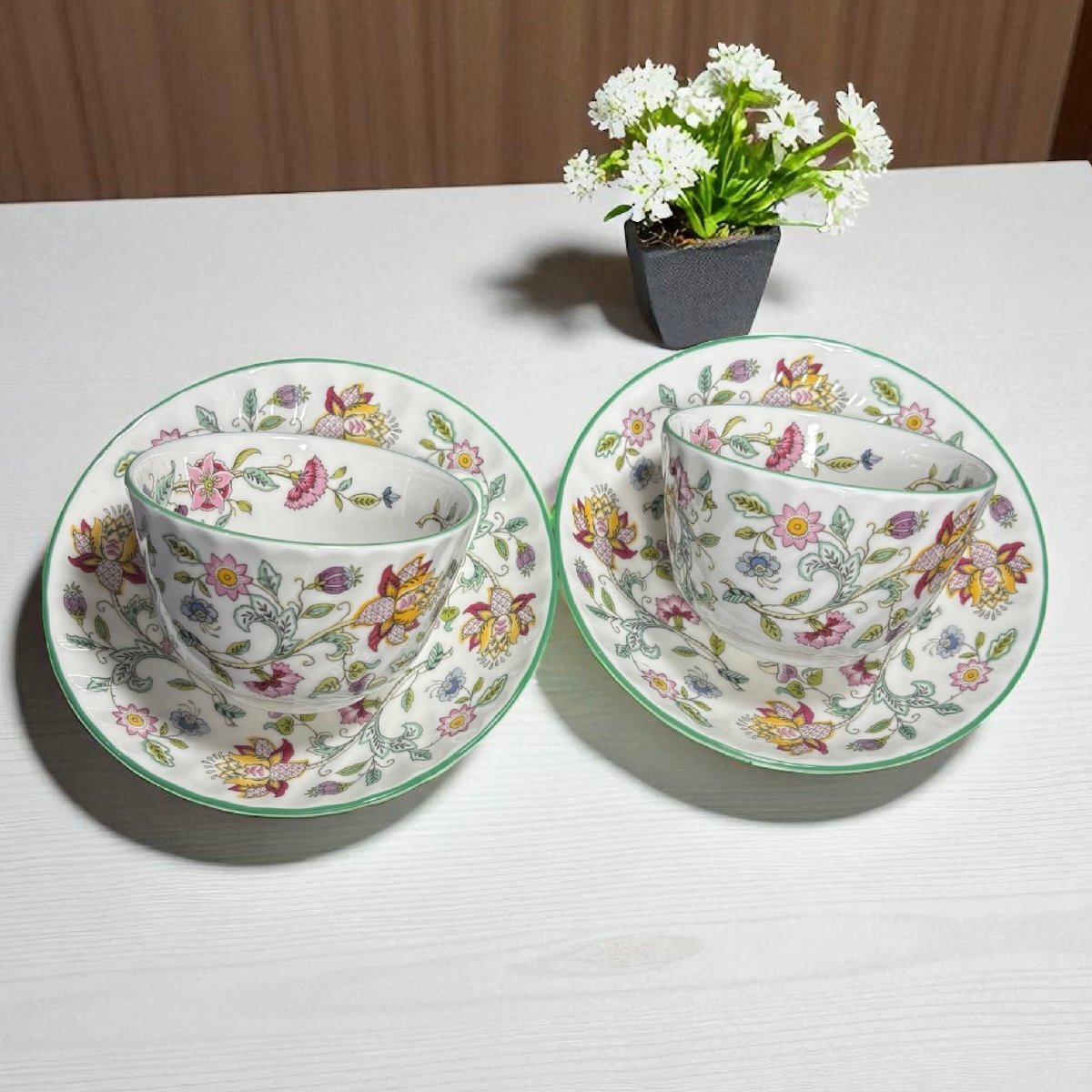 【2客揃】MINTON Haddon Hall カップ&ソーサー 花柄 ミントン ハドンホール 廃版 マグカップ 紅茶 コーヒー カップ 茶器 昭和 レトロ アンティーク