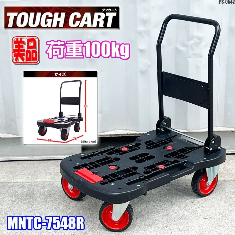 美品!! タフカート 台車 オフロード用 荷重100kg ゴム車輪 PP樹脂製 運搬 ブラック×レッド MNTC-7548R モノタロウ ◇PS-0542