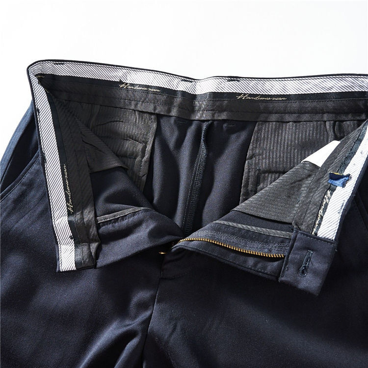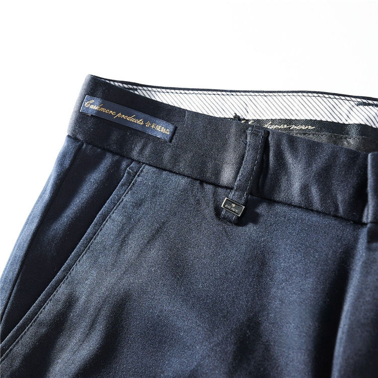 Y6505-M ネイビー 新品 ストレートパンツ カシミヤ混 リヨセル混 秋冬 防寒 厚手 ノーアイロン ストレッチ メンズ ビジネス カジュアル
