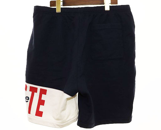 シュプリーム SUPREME × LACOSTE 19AW LOGO PANEL SWEATSHORT NAVY M ラコステ ロゴ パネル スウェット ショート ハーフ パンツ ネイビー